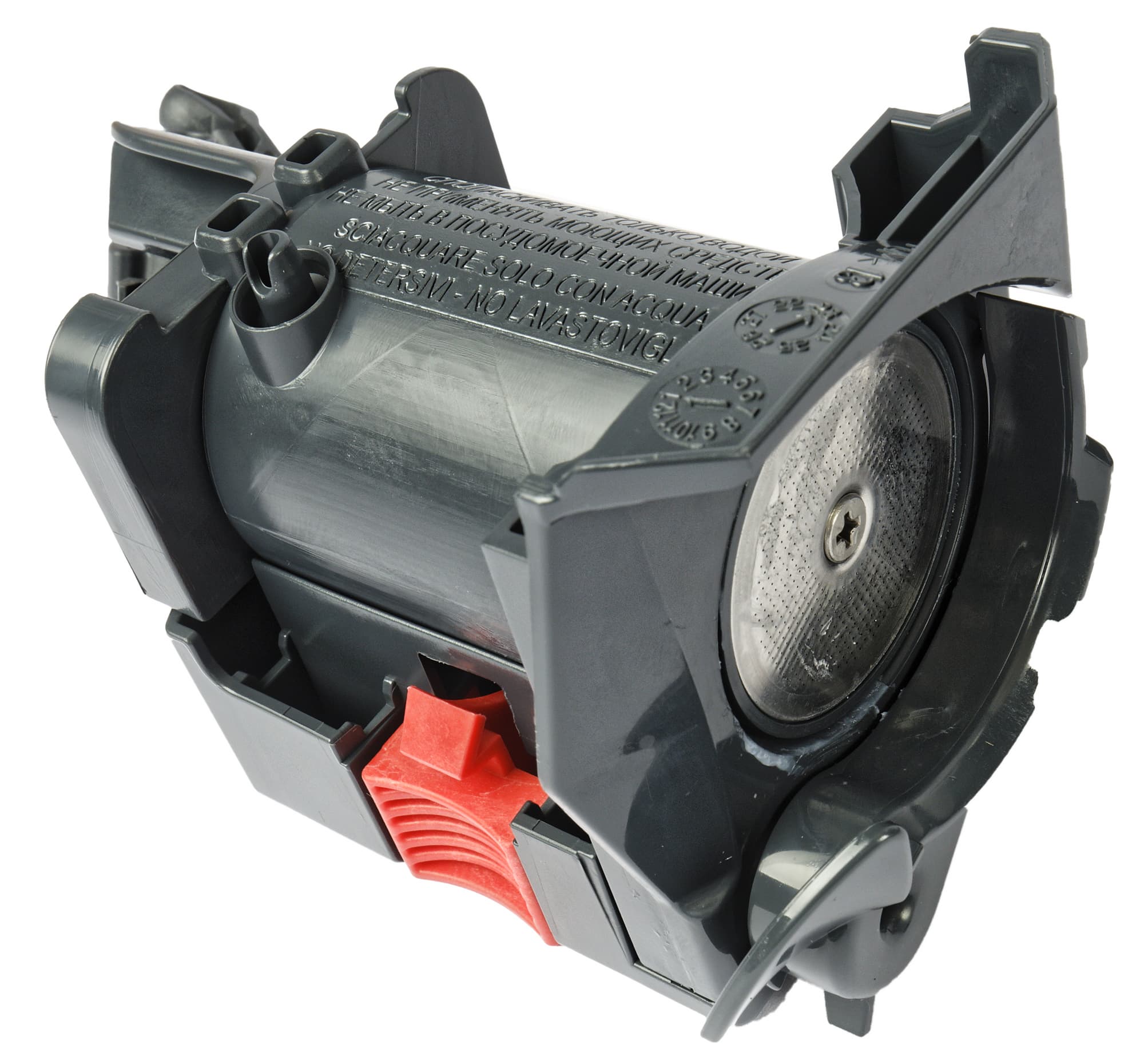 Как мы видим, перед нами компактный заварочный блок с запатентованной системой CRF с предварительным смачиванием и простым извлечением. Емкость такого блока — до 14 граммов молотого кофе.