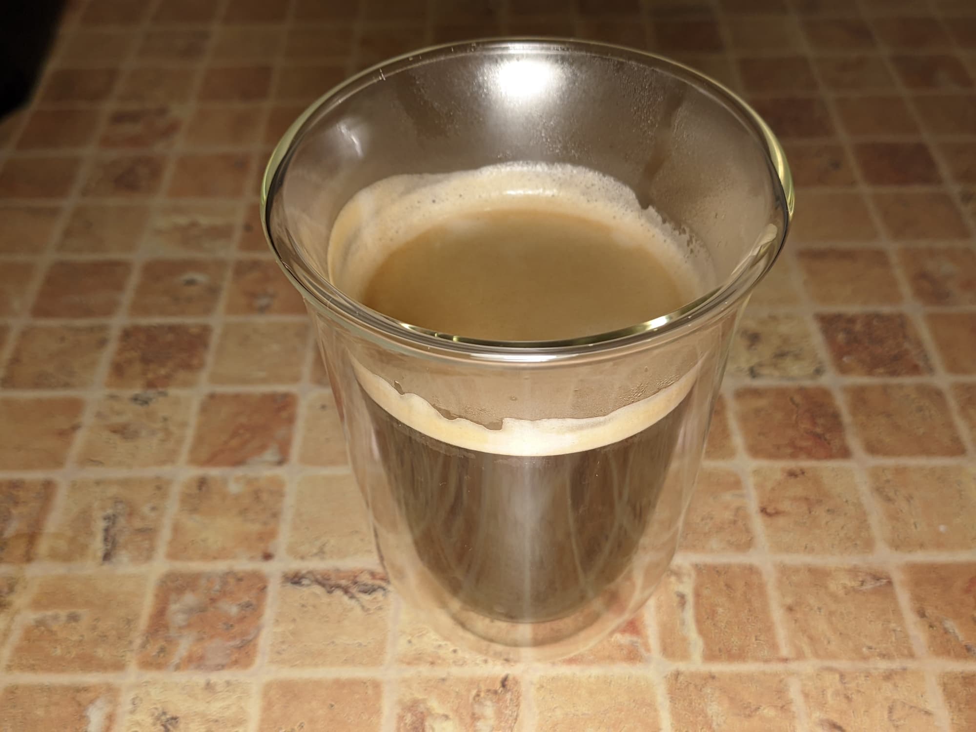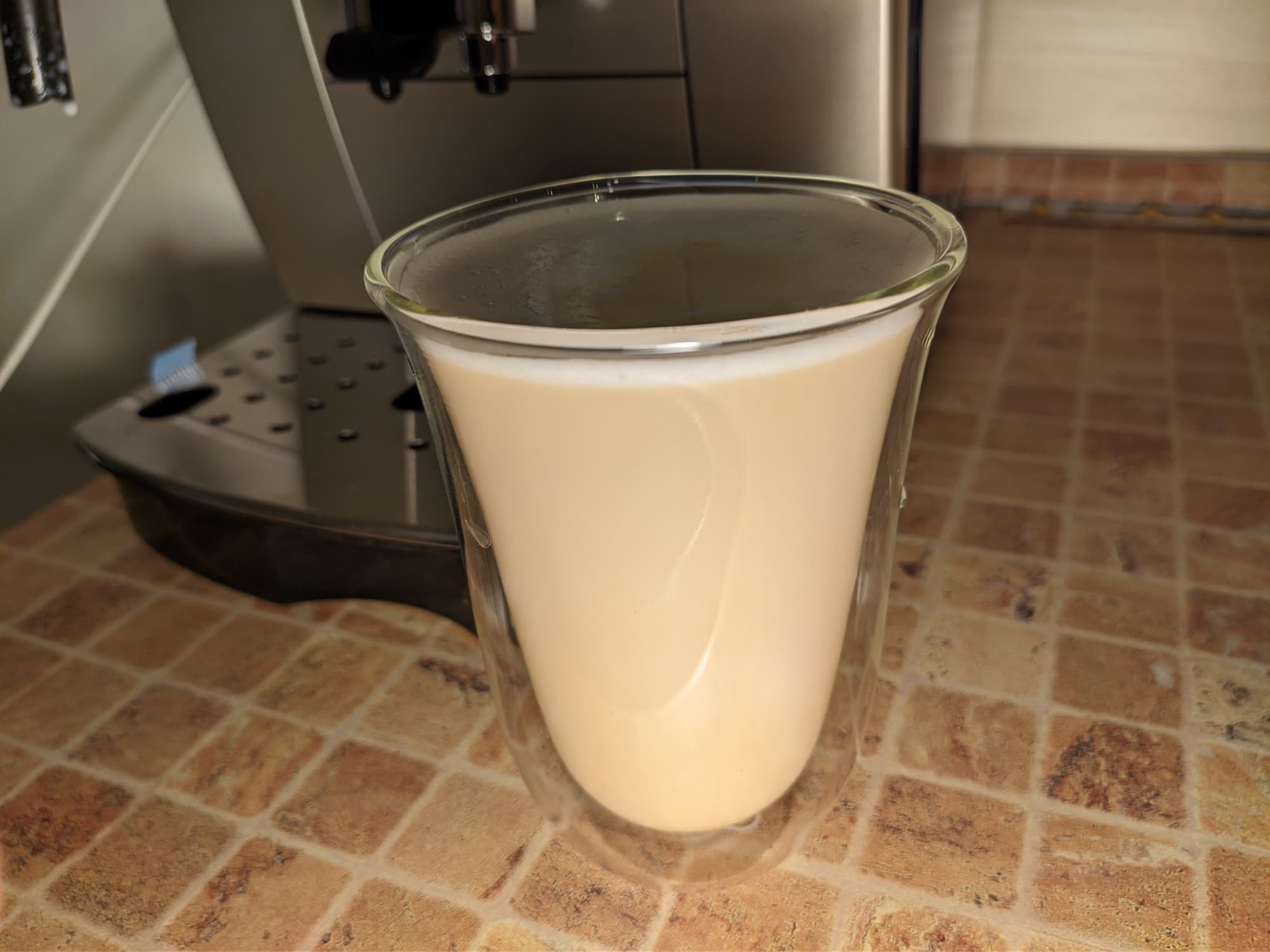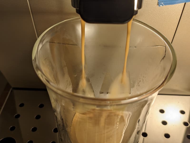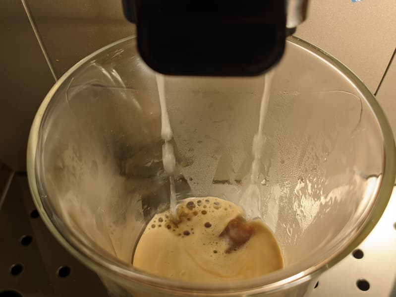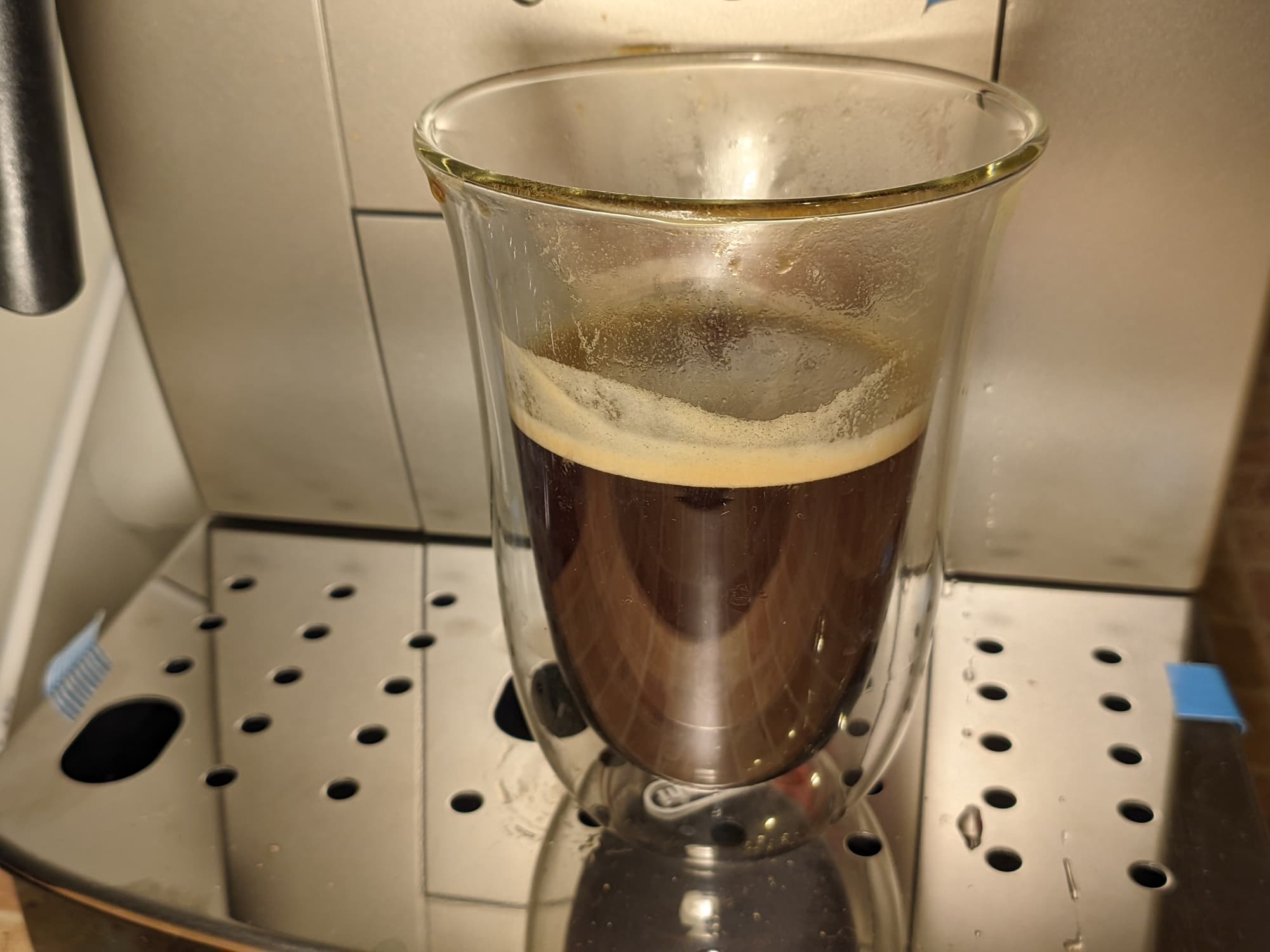 С режимом американо также оказалось все хорошо. За 1,5 минуты мы получим около 150 г напитка с температурой около 78 °C. При этом новая магнифика сначала приготовит честный эспрессо, а потом честно нальет горячей воды (а не прольет ее через кофейную таблетку).