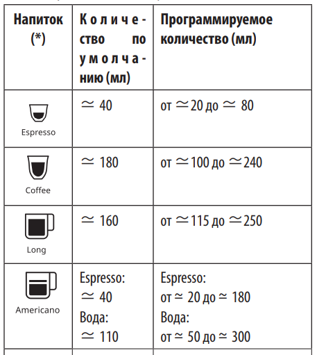 Допустимый объем напитка в этом режиме составляет от 20 до 80 мл (точный объем будет зависеть от сорта кофе и выбранного помола).