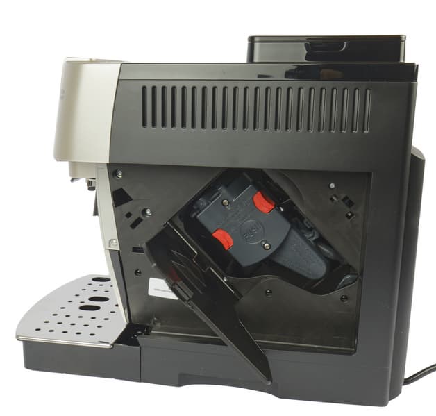 Без разборки кофемашины мы этого не сможем увидеть, однако изучая информацию о приборе мы выяснили, что наш аппарат имеет два проточных термоблока мощностью 1450 Вт — один для приготовления кофе, второй для пара. Снова перед нами стандарт для ECAM-систем.