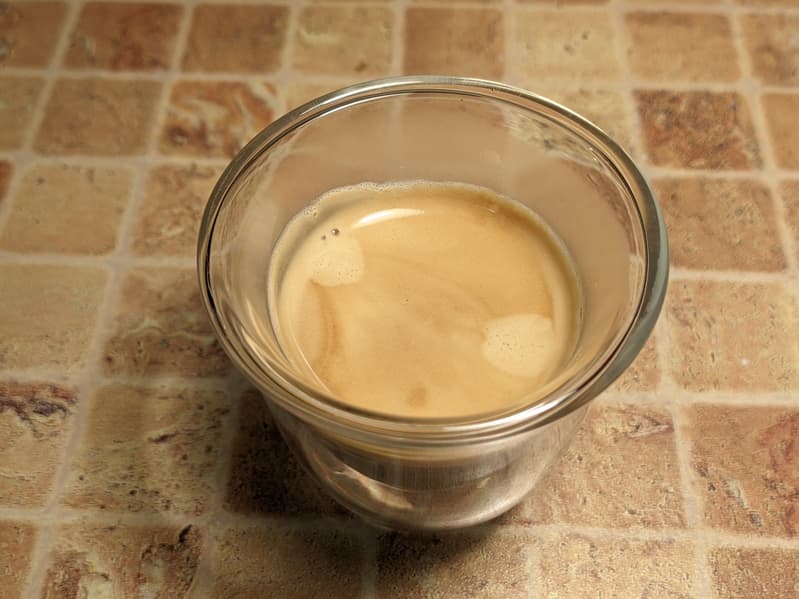 Первое приготовление (после включения) заняло чуть больше минуты (до момента готовности машины к новому запуску — 68 секунд). Температура готового напитка в непрогретой чашке составила 79 °C — весьма достойный результат.