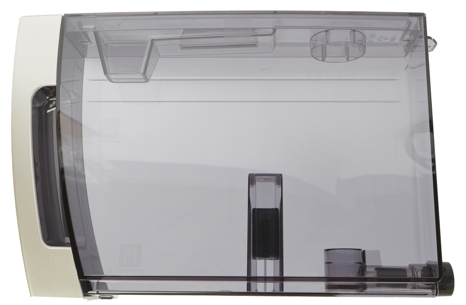 Контейнер для воды объемом 1,8 литра расположен справа, достается — спереди. В контейнере предусмотрена возможность установки фильтра смягчения воды. Сам контейнер легко (одной рукой) снимается и устанавливается на свое место. Вода заливается через небольшой отверстие сверху контейнера, либо при снятой крышке.