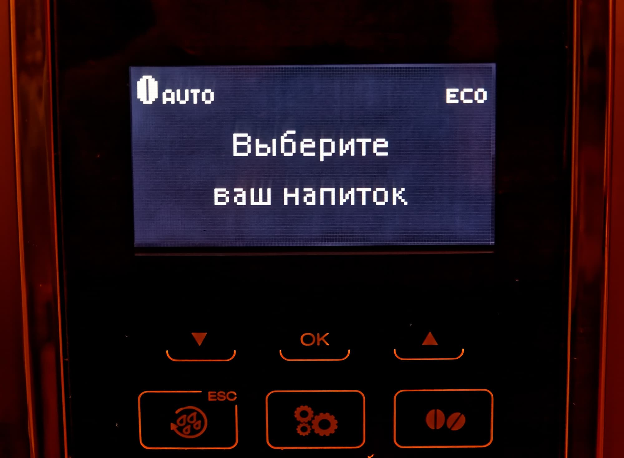 Управление кофемашиной осуществляется с помощью черно-белого дисплея с «пиксельной» графикой и довольно большими буквами и набора сенсорных кнопок.