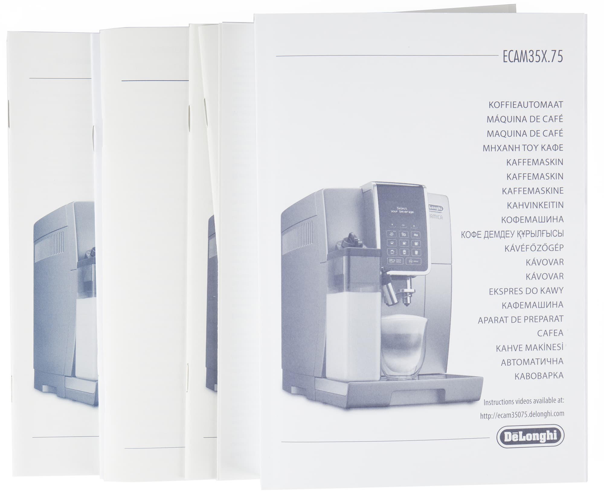 В комплекте с кофемашиной поставляется большое количество печатных материалов, из которых нас в первую очередь интересует, конечно, инструкция. Тут их нашлось несколько — для разных языков.