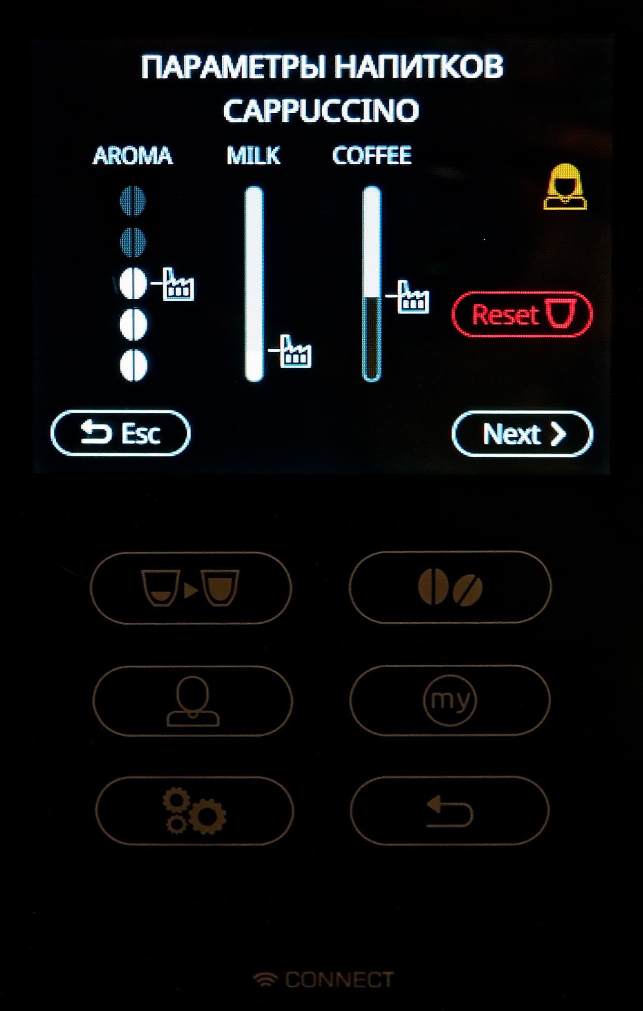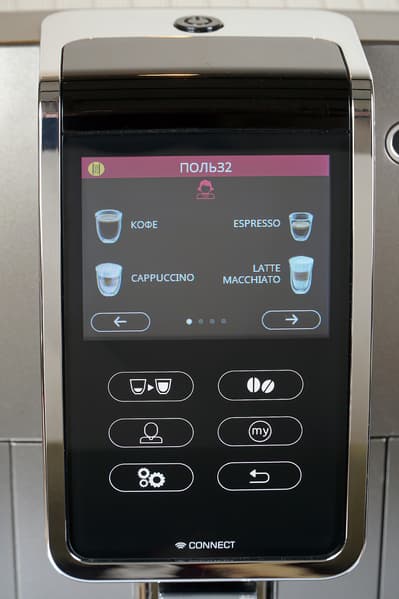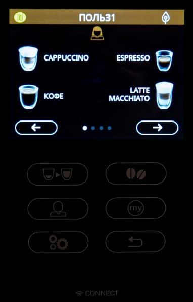 Все остальные действия (за исключением работы с капучинатором) осуществляются с помощью сенсорного экрана и сенсорных кнопок, расположенных под ним.