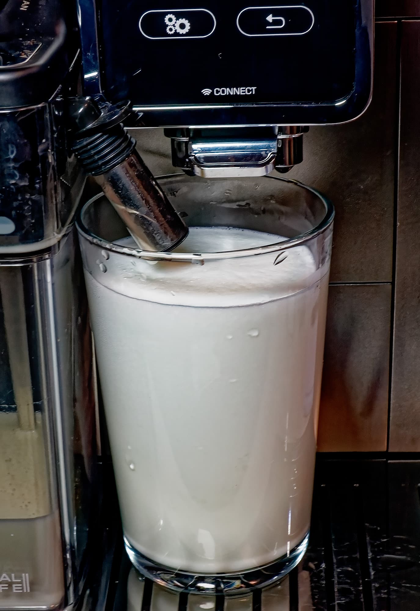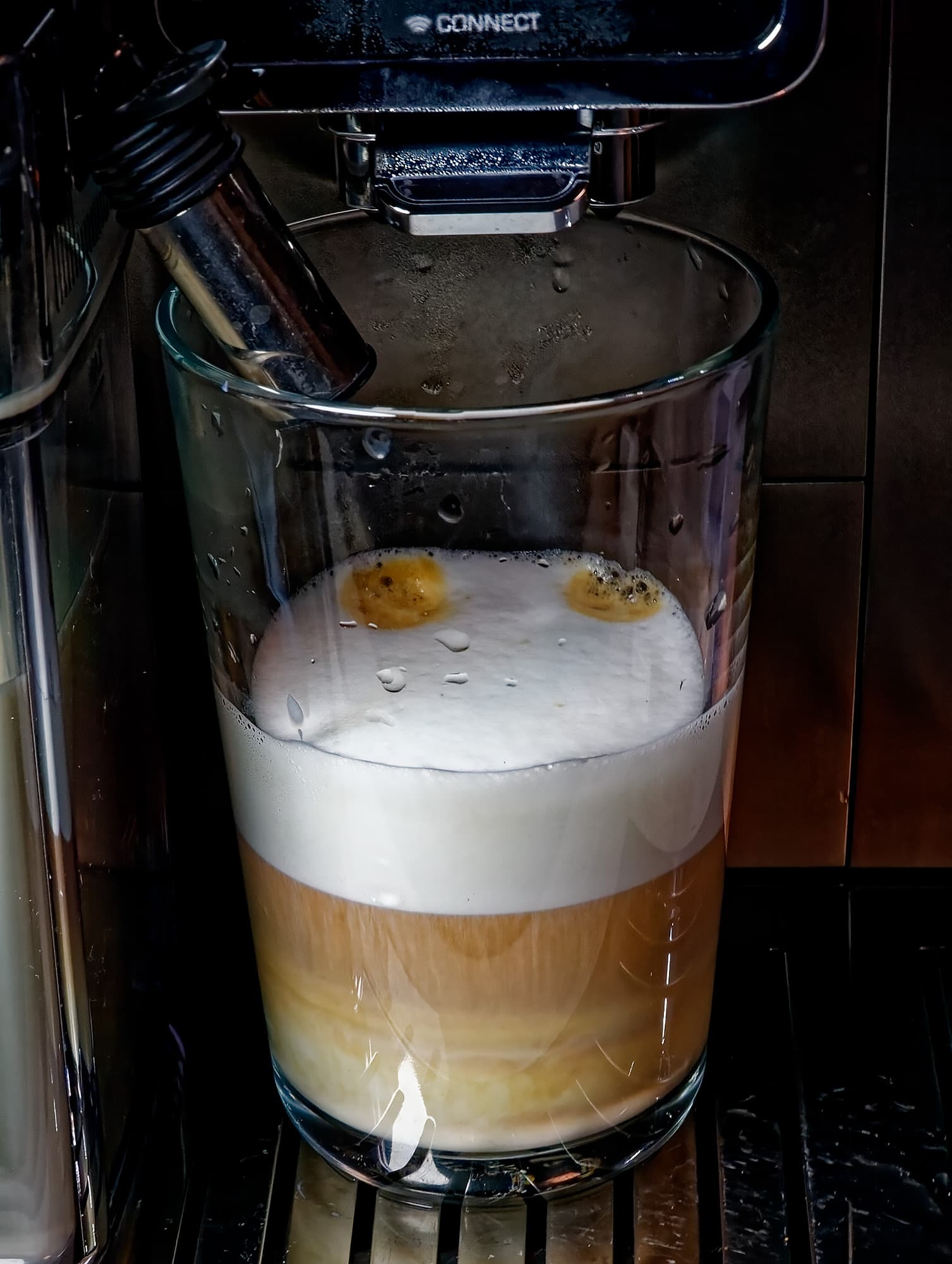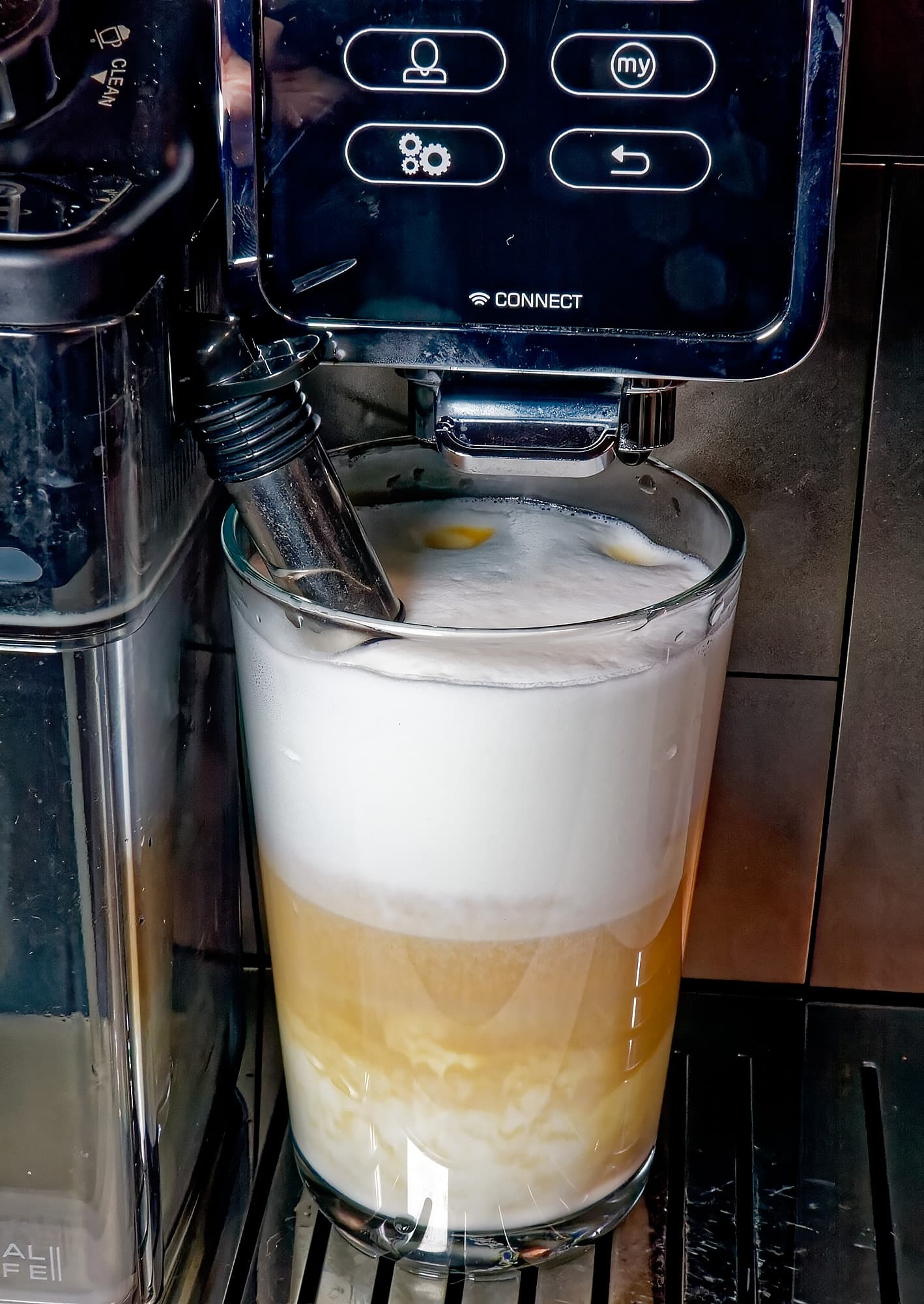 На стандартных настройках рецепт «капучино» наливает около 140 мл молока, а затем — 60 мл эспрессо. Вкус у напитка получается отличный, вот только... это не совсем капучино.