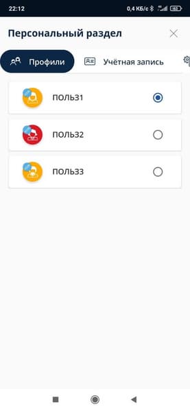 - выбор пользовательского профиля;