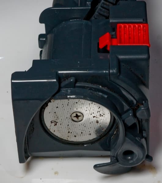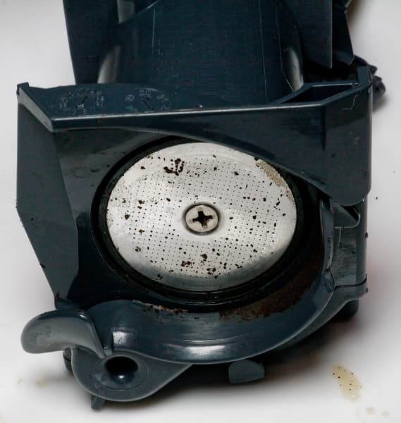 За контейнером для воды находится спрятанный пластиковый лючок, а за ним — компактный заварочный блок, вмещающий до 14 граммов кофе и легко извлекающийся для промывки под проточной водой.