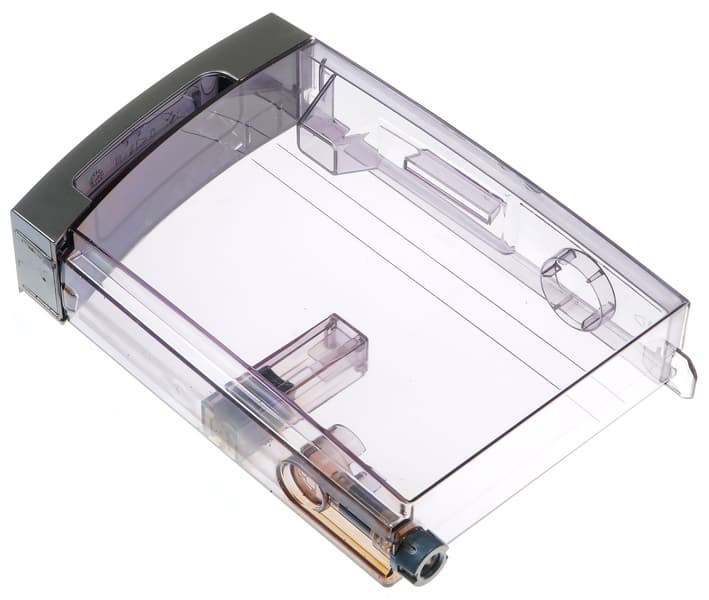 Контейнер имеет пластиковую съемную крышку и место для установки специального фирменного фильтра. Подача воды в прибор осуществляется с помощью клапана, расположенного в нижней части. Наполнение — через отверстие в верхней части.