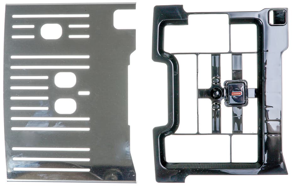 Спереди устанавливается составная подставка из металла и пластика.