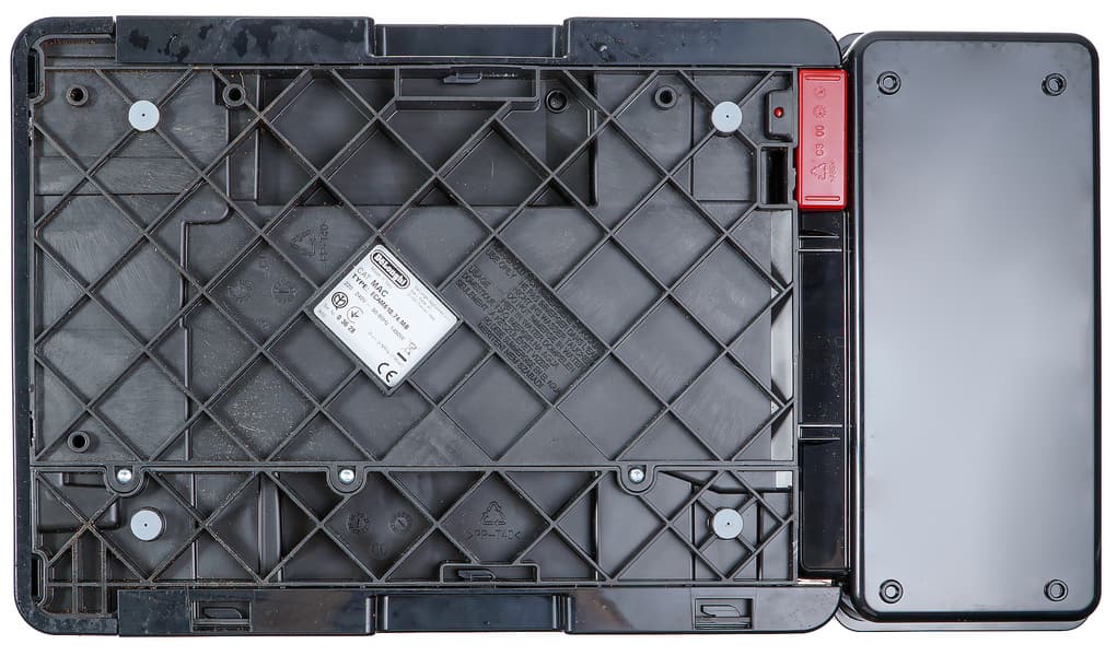 Сзади и слева смотреть, в общем-то, не на что. Сзади находится наклейка с технической информацией, разъем для подключения шнура питания, кнопка включения/отключения и вентиляционные отверстия.