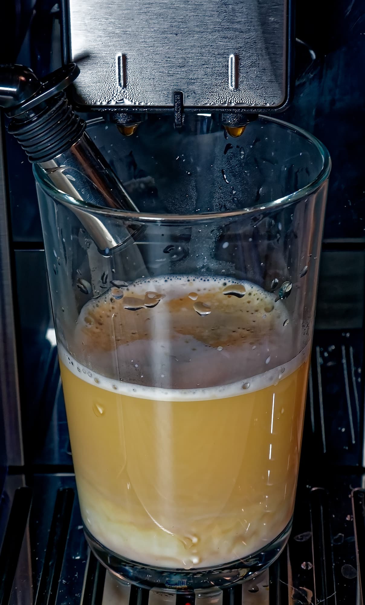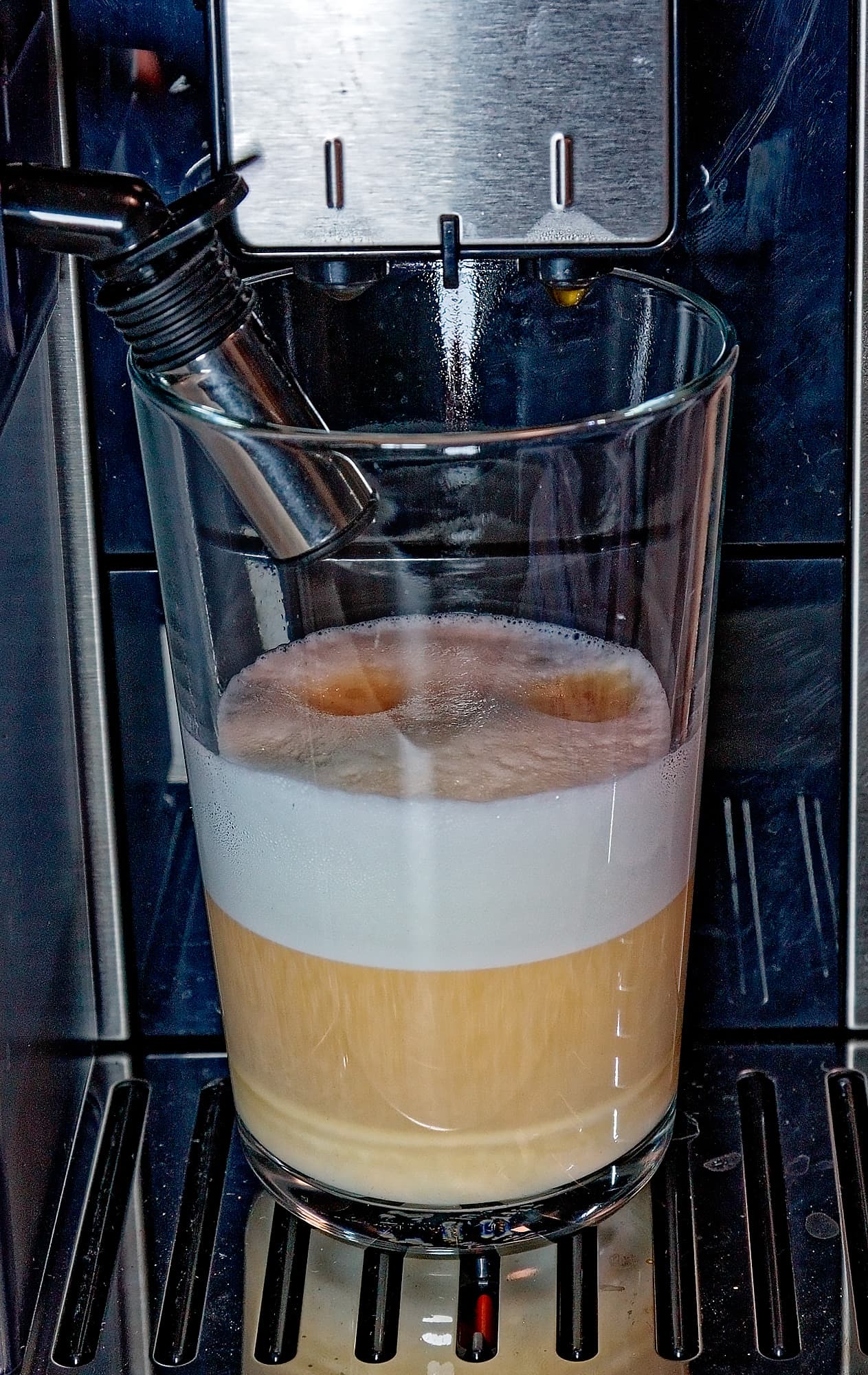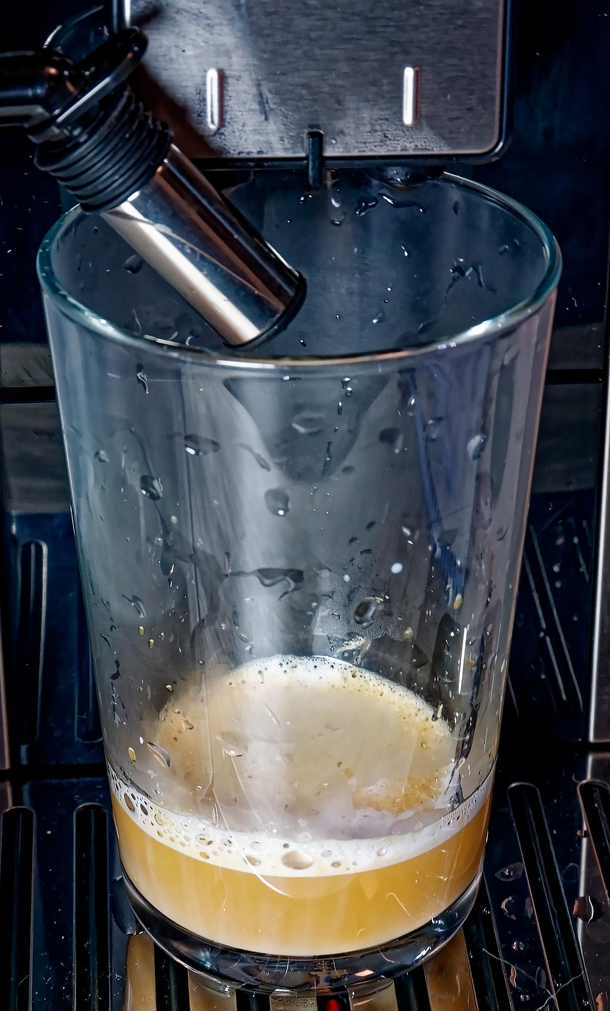 На этот раз машина льет молоко 29 секунд (при этом настройки пены средние), а потом добавляет 60 мл кофе.