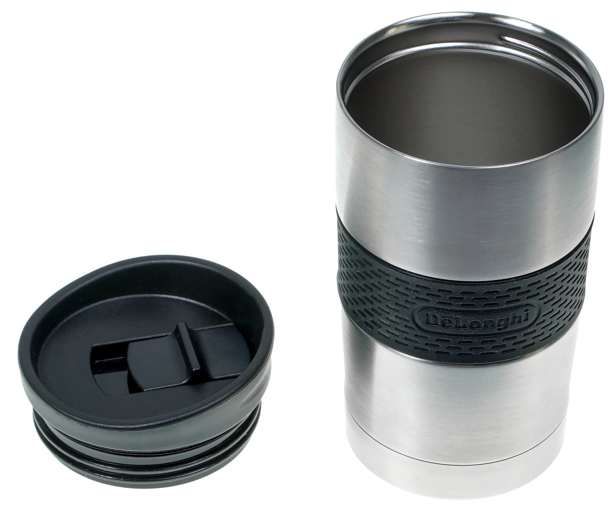 Устройство кружки вполне стандартно: металлическая емкость, резиновая зона захвата, пластиковая резьбовая крышка с закрывашкой-защелкой.