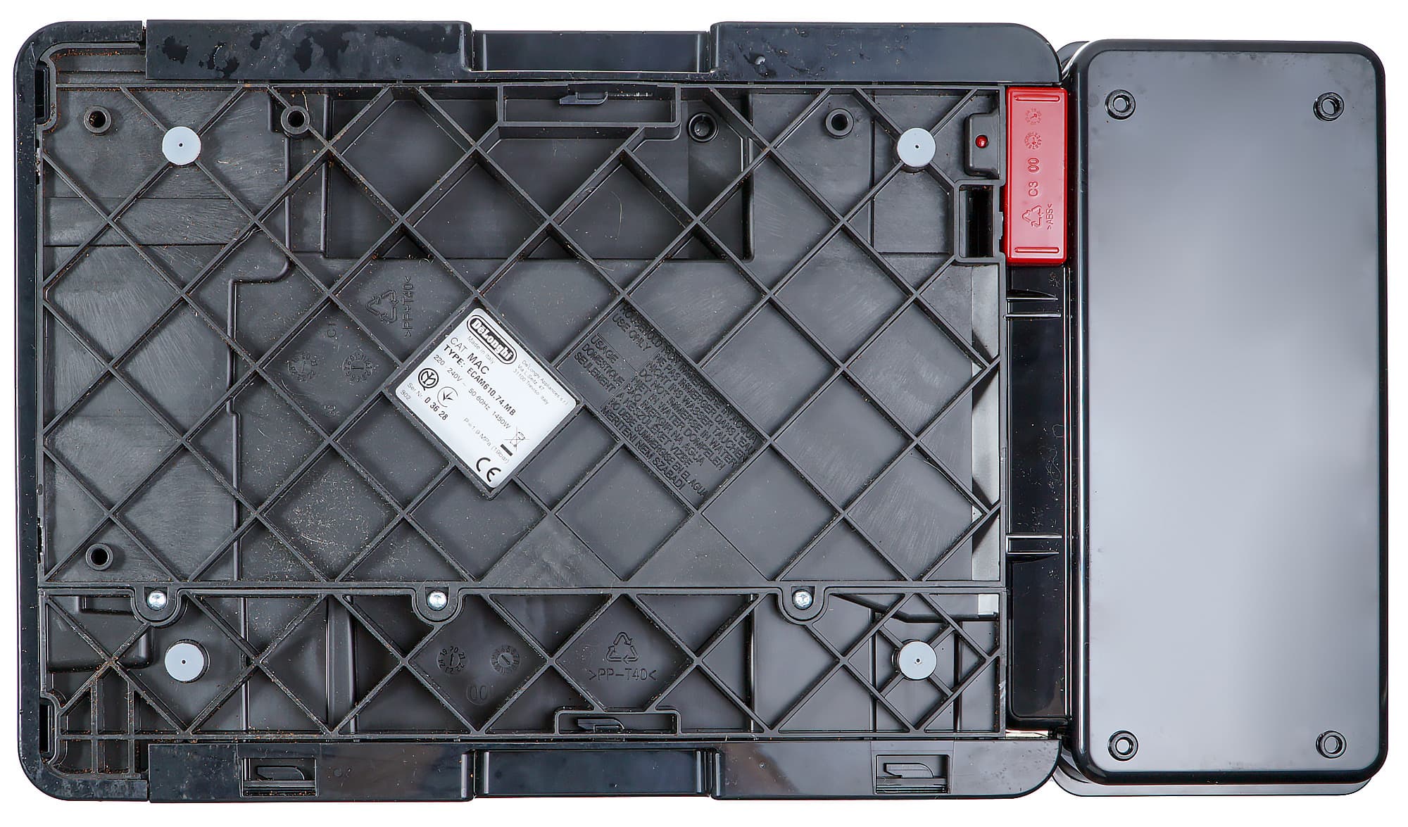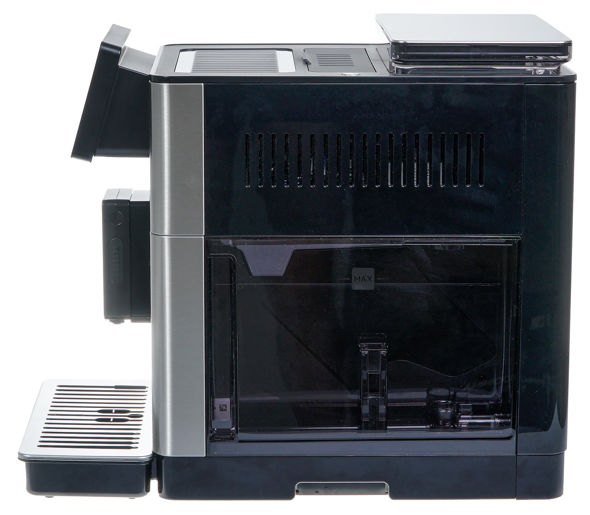Передняя панель, верхняя панель (место для подогрева чашек), крышка отсека для кофе — металлические.
