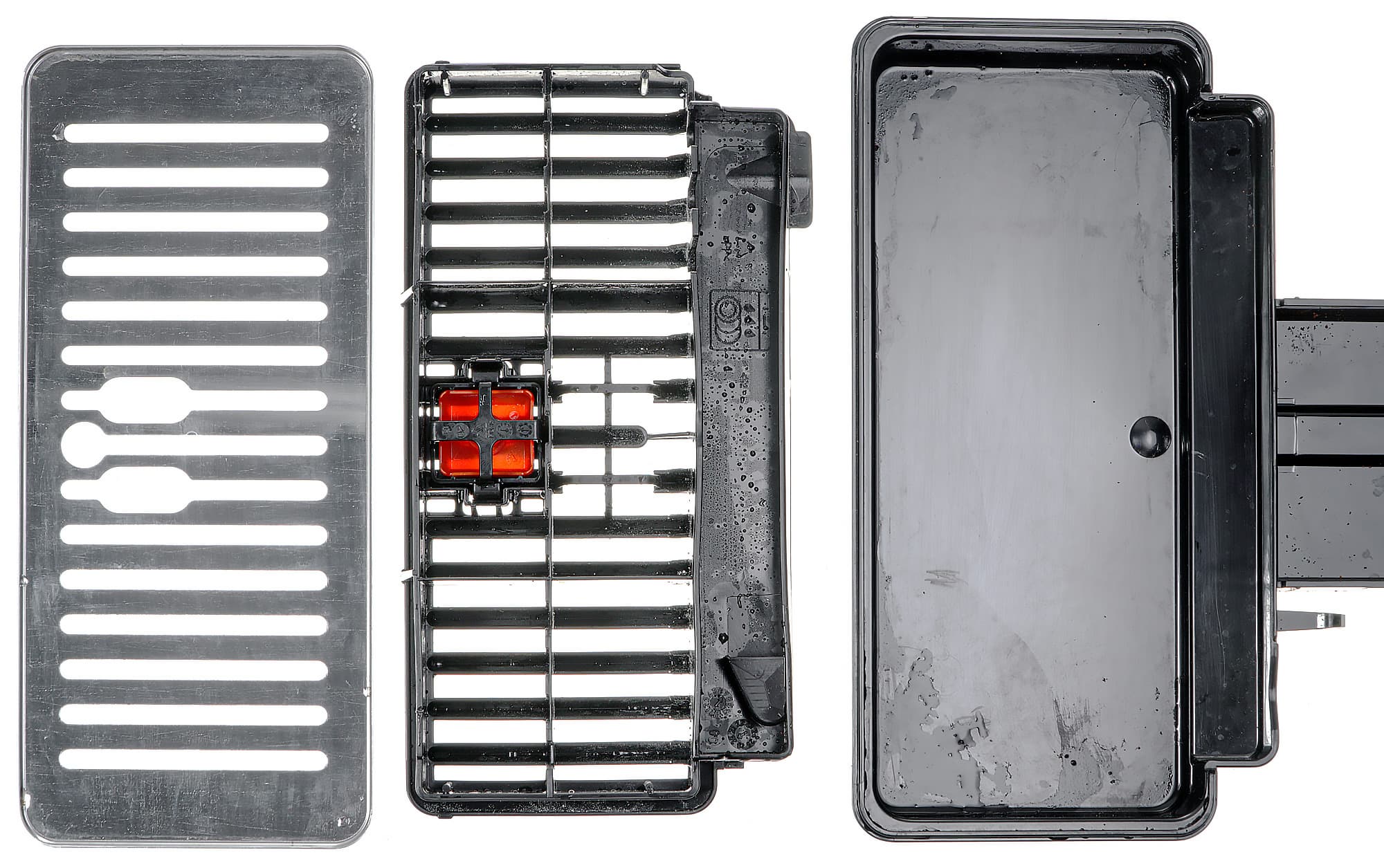 На каждом пластиковом элементе присутствует специальный значок, с помощью которого легко понять, можно ли мыть данную конкретную деталь в посудомоечной машине.