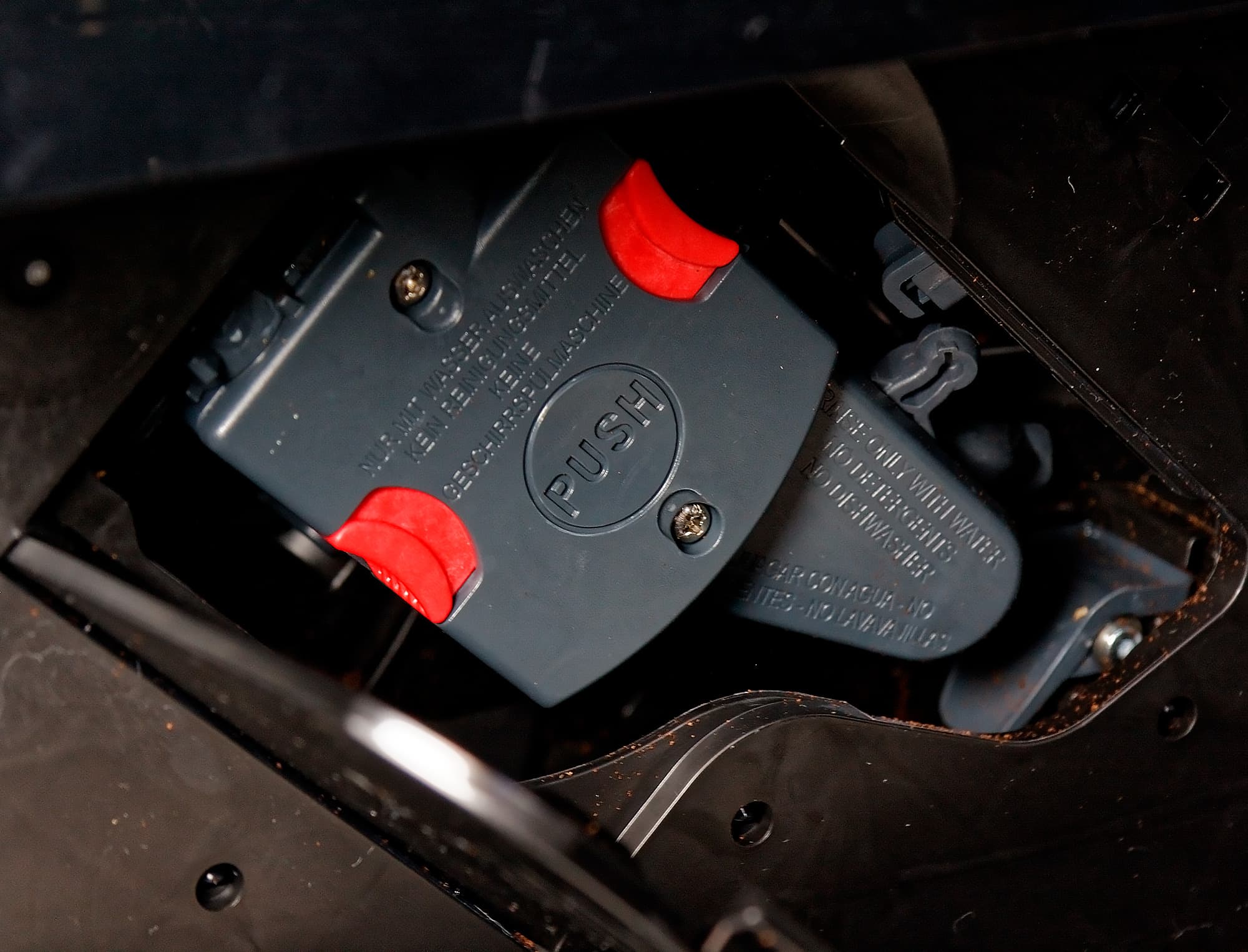 За контейнером для воды находится спрятанный пластиковый лючок, а за ним — компактный заварочный блок, вмещающий до 14 граммов кофе и легко извлекающийся для промывки под проточной водой. Промывать его, кстати, время от времени придется (примерно раз в месяц). Мы рекомендуем при первом же знакомстве с устройством рассмотреть блок и понять, как его правильно извлечь и поставить обратно.