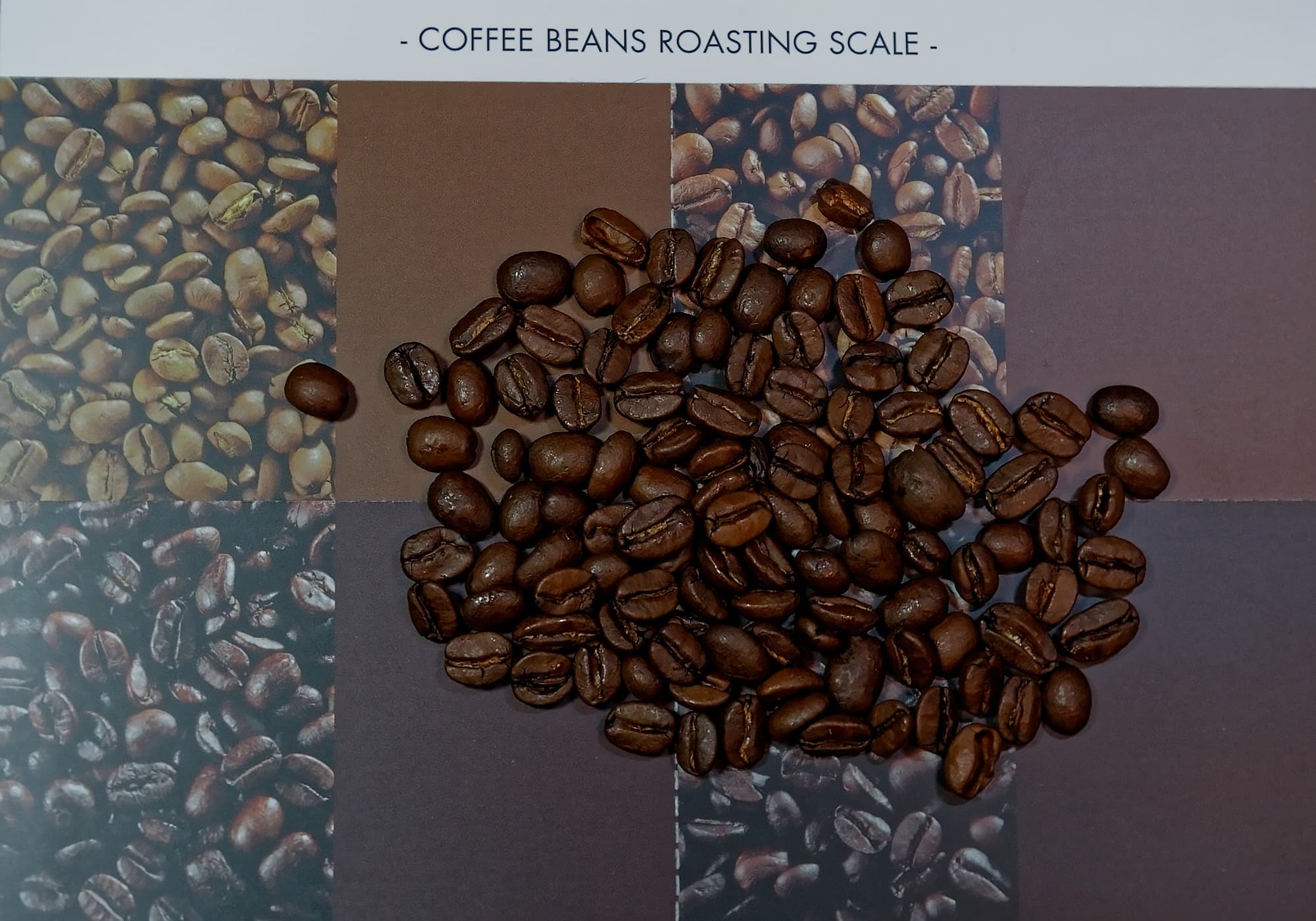 Если вы не смогли найти информацию о степени обжарки на упаковке (либо если подозреваете, что производитель кофе дает информацию, не соответствующую действительности), то на этот случай предусмотрен специальный «калибровочный лист» — картонка с четырьмя цветами кофе, соответствующих светлой, средней, темной и очень темной обжарке. Пользователю предстоит определить, на какой цвет больше всего похож его кофе.