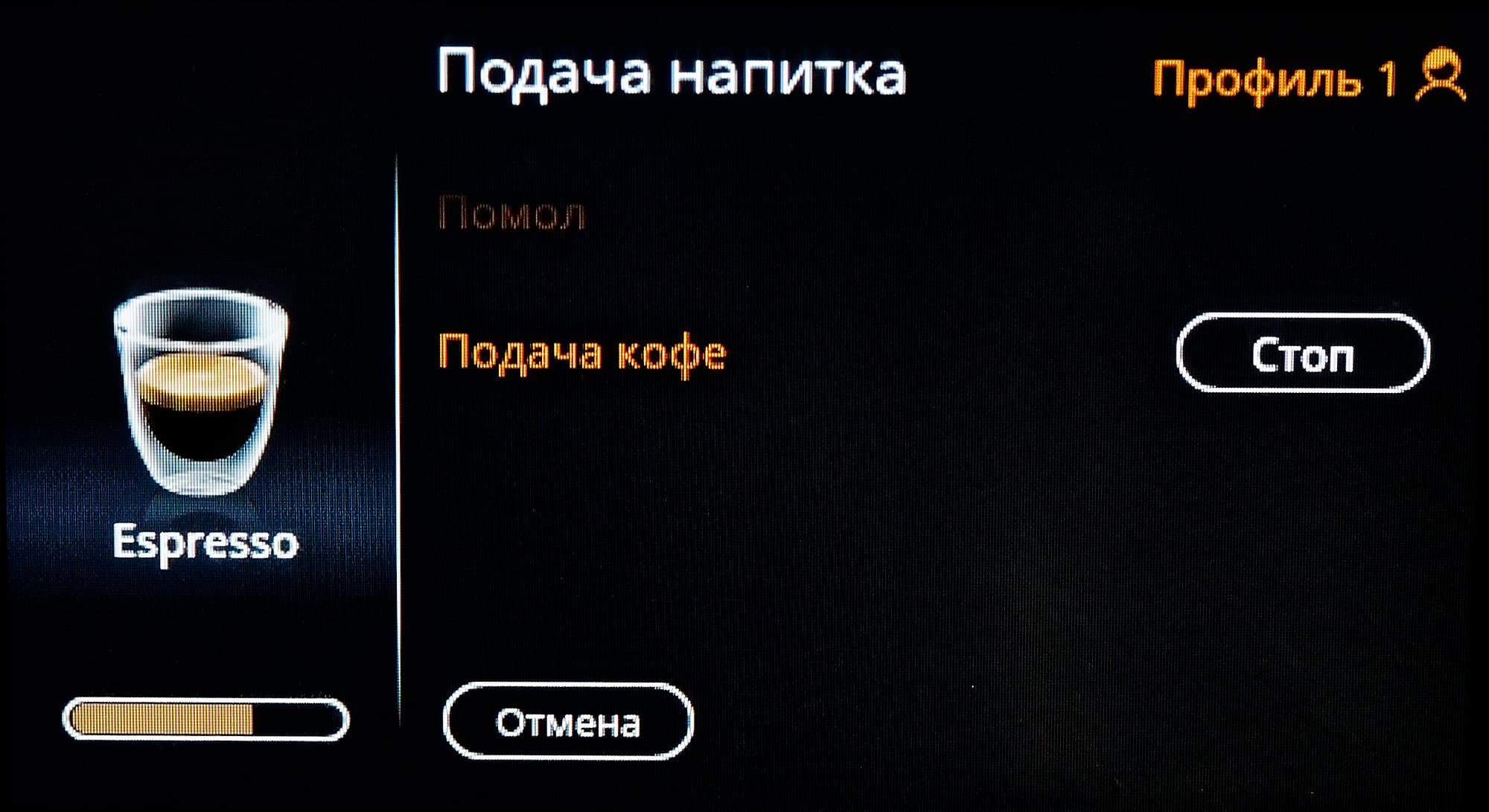Все остальные действия (за исключением работы с капучинатором) осуществляются с помощью сенсорного экрана.