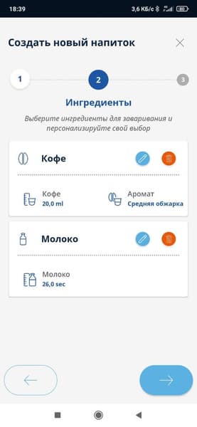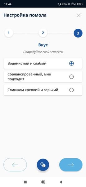 Вначале предлагается указать, какое зерно вы используете — арабику или смесь с робустой. Затем — степень обжарки.