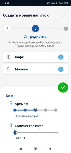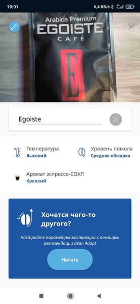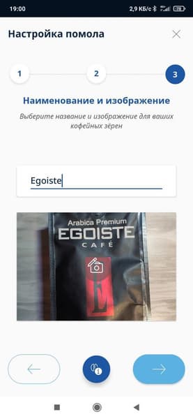 После этого система выставит настройки помола и температуры наиболее подходящие для данного типа зерна, а пользователь сможет завести специальный профиль для данных зерен — указать название и сделать фотографию.