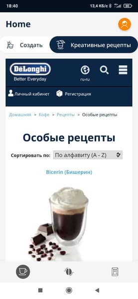 В нашей кофемашине предусмотрен 21 рецепт, большинство из которых хорошо нам знакомы по предыдущим моделям автоматических кофемашин De’Longhi, однако есть и новые.