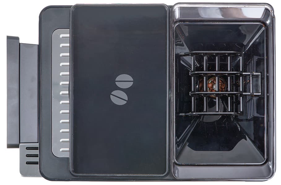 На дне отсека для зерен расположена кофемолка. Про нее мы поговорим чуть позже.
