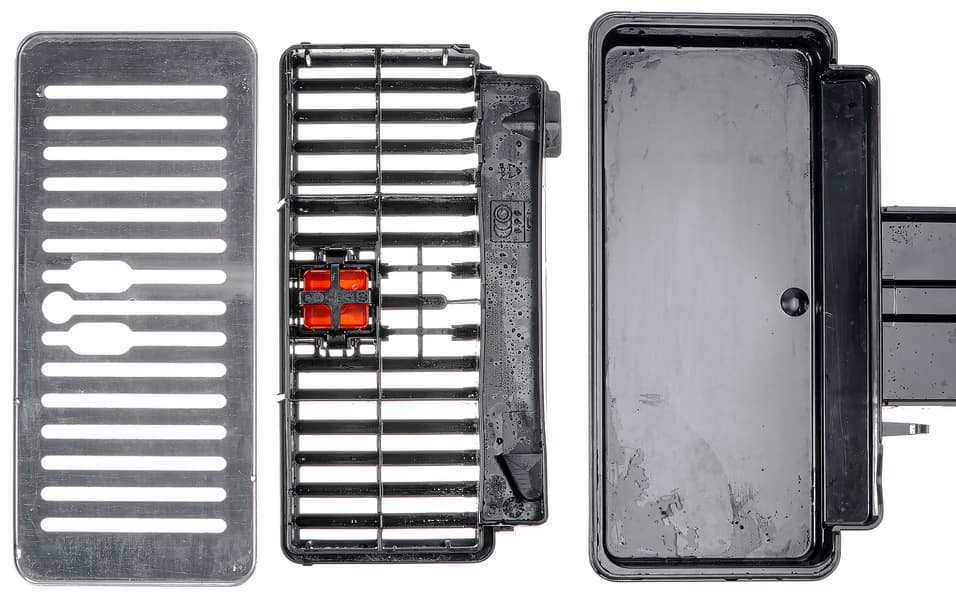 По центру устанавливается пластиковый контейнер для отработанного кофе (кофейных таблеток). Его можно снять и установить независимо, не вынимая всю подставку полностью, а лишь выдвинув ее.