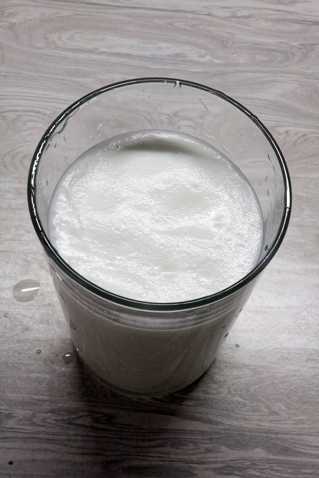 С помощью нашего волшебного кувшина мы можем получить порцию холодного взбитого молока примерно за одну минуту.