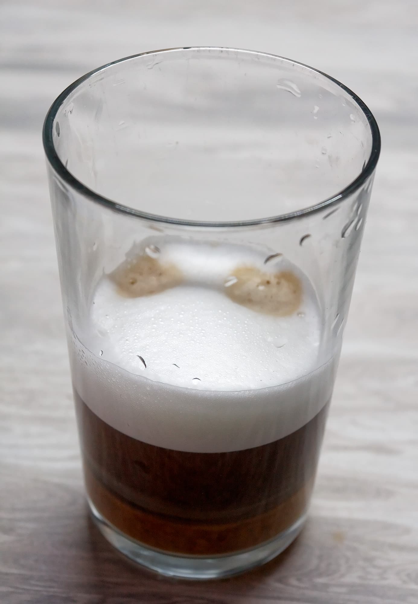 Дело в том, что «правильный» капучино готовится в иной последовательности: сначала мы готовим эспрессо, а потом вливаем в него молочную пену.