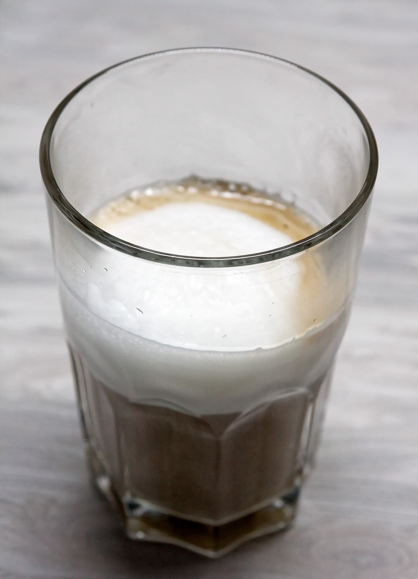 Венчик тщательно перемешал содержимое, а кофемашина нагрела напиток до комфортной (горячей) температуры.
