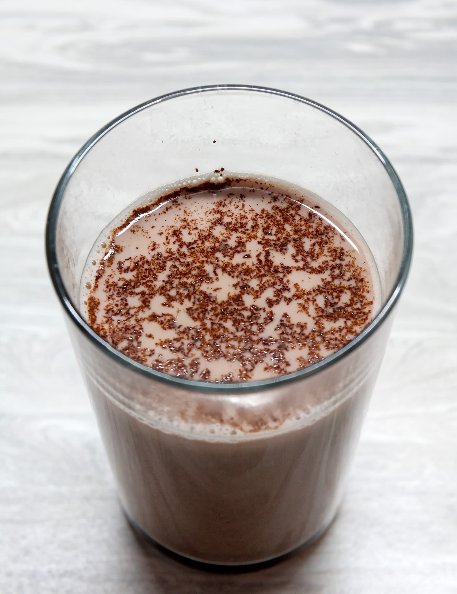 В готовый напиток можно добавить вкусовые добавки (мы посыпали его тертым шоколадом).
