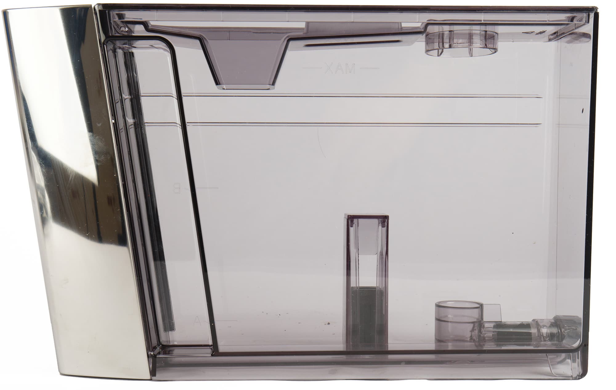 Если вынуть контейнер, то обнаружится, что у него есть пластиковая съемная крышка и место для установки специального фирменного фильтра. Подача воды в прибор осуществляется с помощью клапана, расположенного в нижней части. Наполнение — через отверстие в верхней части. На боковой грани контейнера присутствует отметка максимального уровня воды.