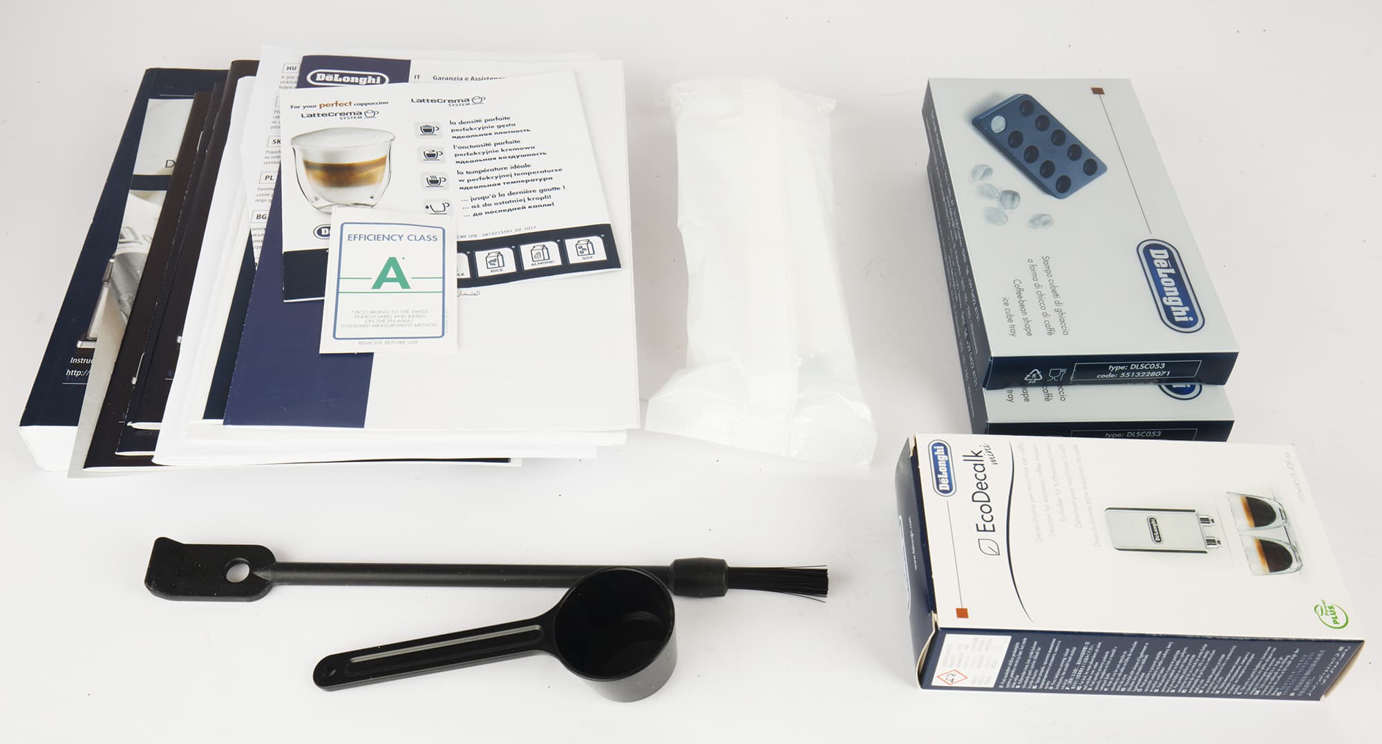 Что можно сказать про комплектацию? Тут есть все для того, чтобы начать пользоваться прибором (кроме, разве что, кофе) и провести первое обслуживание (очистку) без необходимости идти в магазин.
