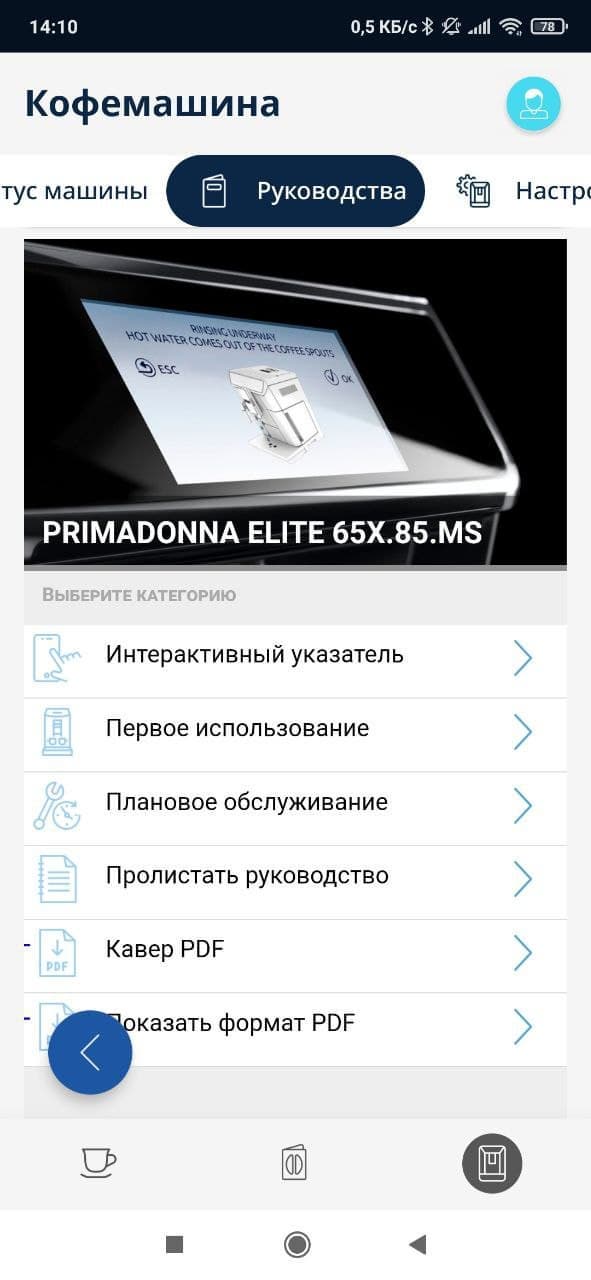 Управление кофемашиной осуществляется с помощью цветного сенсорного TFT-дисплея с диагональю 4,3 дюйма. Разработчик решил полностью отказаться от использования отдельных сенсорных кнопок (такое решение осталось у младшей модели серии PrimaDonna), полностью перейдя на управление с сенсорного экрана. Выглядит дисплей очень неплохо, хотя и немного устаревшим для 2021 года (не будем забывать: модели уже исполнилось пять лет).