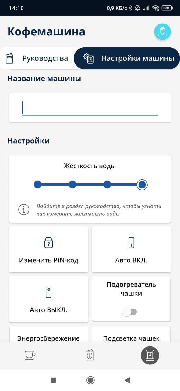 Цветной сенсорный TFT-дисплей у нашей кофемашины слегка подрос по сравнению с предыдущими моделями — до 4,3″. От прочих сенсорных кнопок разработчик решил отказаться, что довольно логично: раз уж мы управляем прибором с дисплея, то зачем нам выносить на панель управления какие-то дополнительные элементы? По современным меркам выглядит дисплей несколько «бледно» (особенно в сравнении с современными флагманскими моделями), тем не менее светится он достаточно ярко, а вся информация считывается без каких-либо проблем даже при ярком солнечном свете.