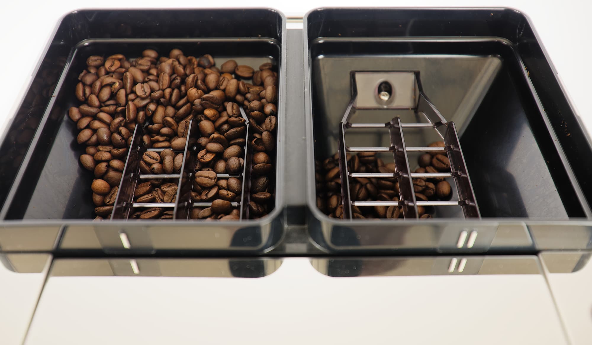 Каждый бункер для зерен вмещает около 290 граммов кофе, чего для домашнего потребления более, чем достаточно.