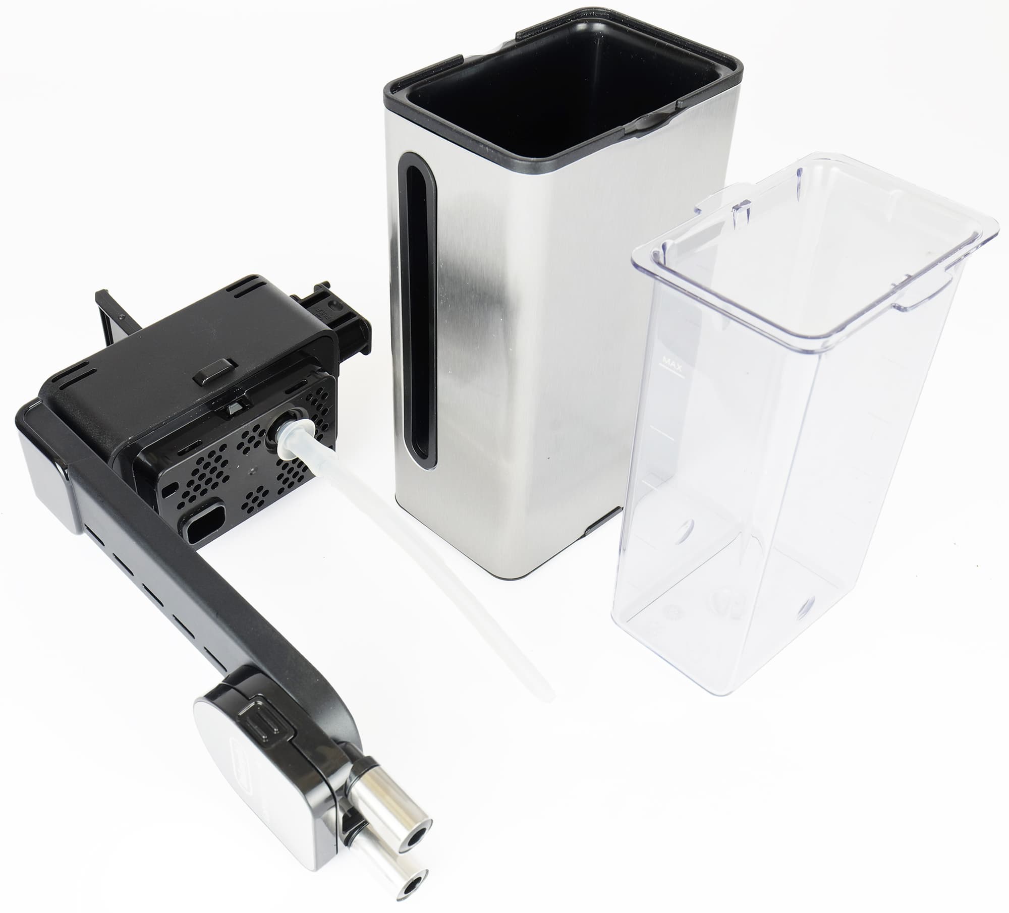 В разъем для капучинатора также можно установить модуль для подачи горячей воды/пара, либо второй контейнер — MixCarafe, предназначенный для приготовления холодных напитков (вот зачем нужны формочки для льда!) либо горячего шоколада.