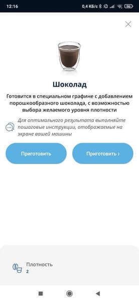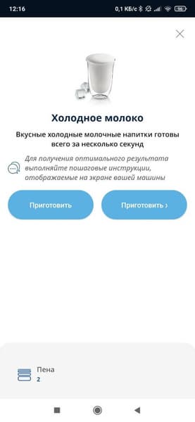Перед началом приготовления мы можем выбрать консистенцию напитка (3 степени), что окажется актуальным для смесей с загустителями. Для приготовления холодной молочной пены машина предложит добавит несколько кубиков льда (делать это, естественно, придется вручную).
