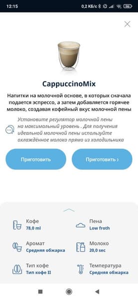 Программа «Капучино микс» готовит «правильный» капучино (сначала подает кофе, потом — молочную пену).