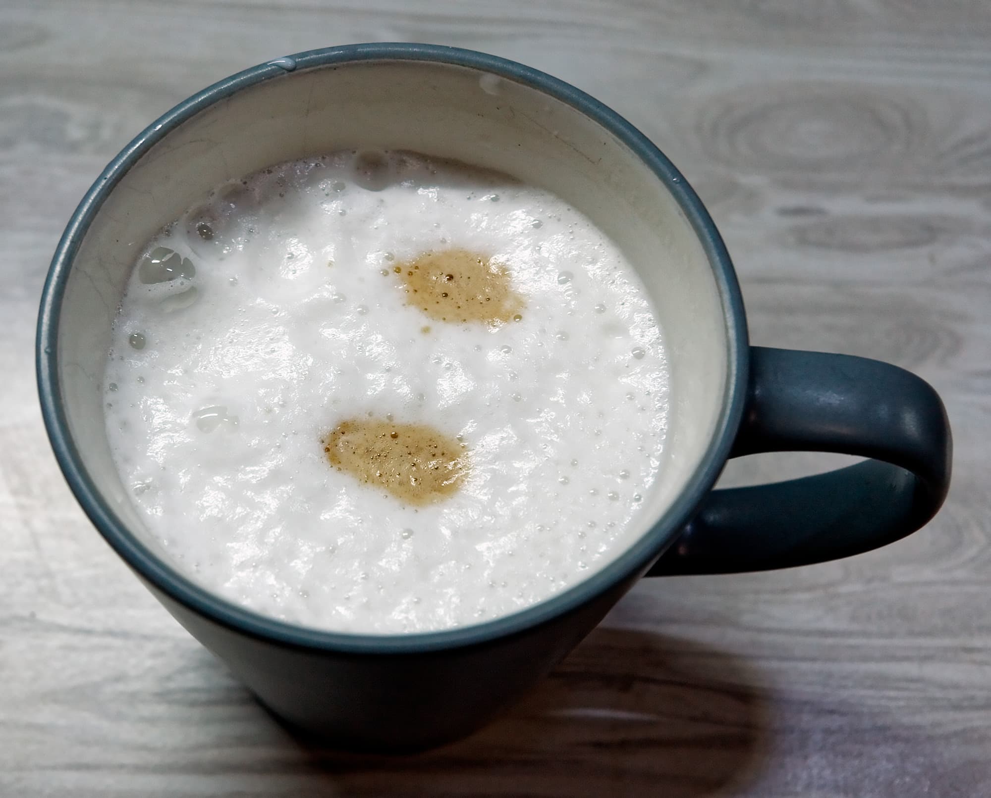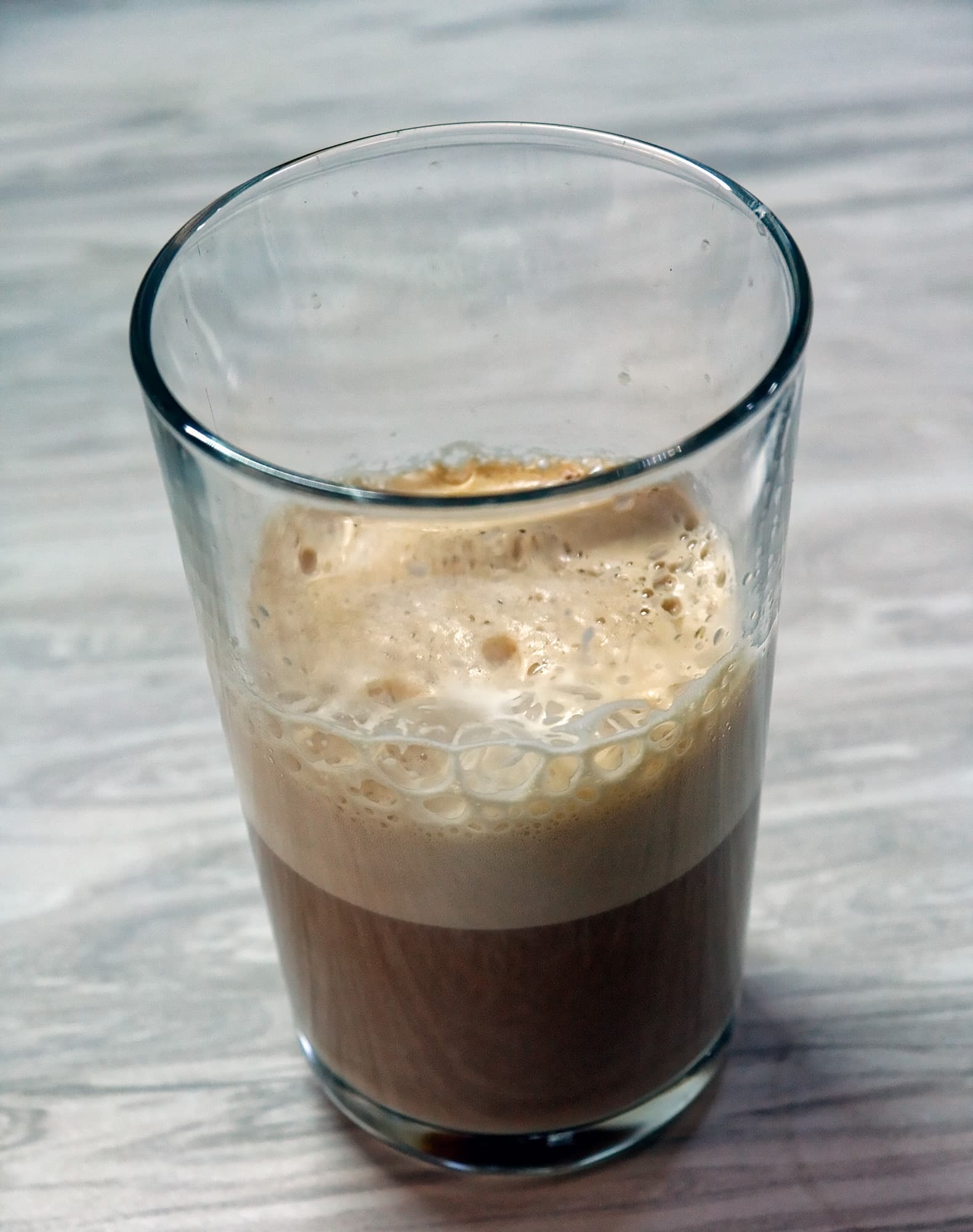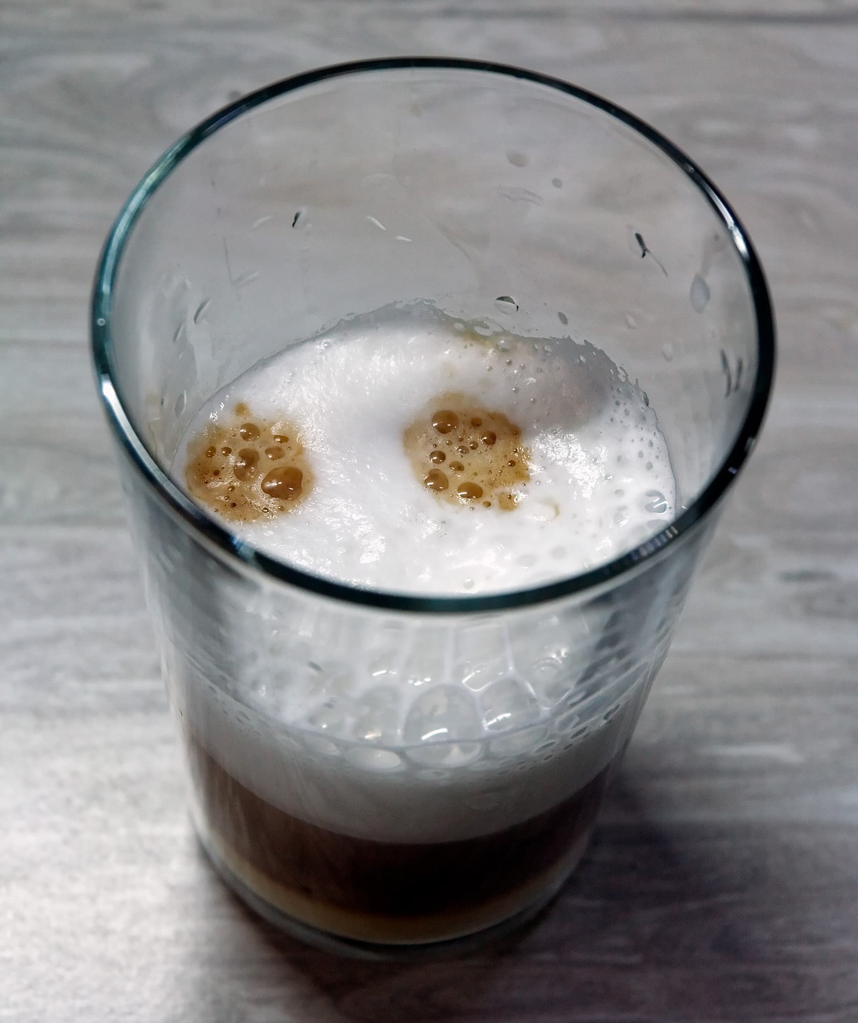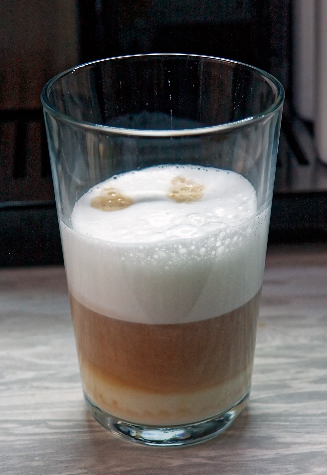 На этот раз машина льет молоко 29 секунд (при этом настройки пены средние), а потом добавляет 60 мл кофе. Общий вес напитка — 160 граммов.