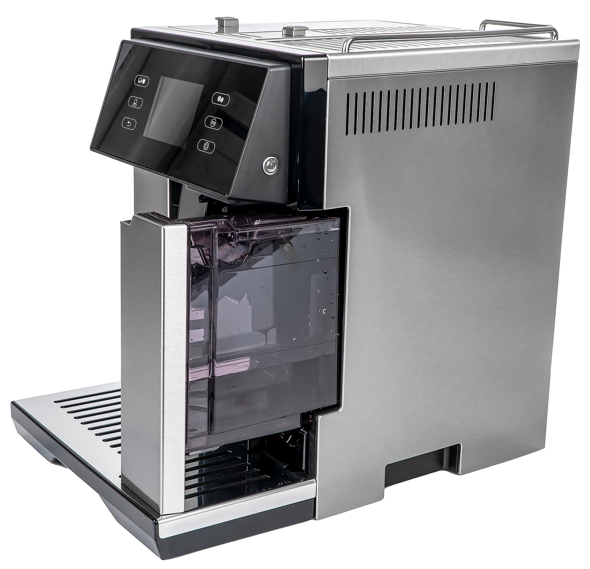 Все операции (кроме работы с капучинатором) осуществляются с помощью сенсорного цветного TFT-дисплея и набора сенсорных кнопок. Об этом мы поговорим позже, в разделе «управление».