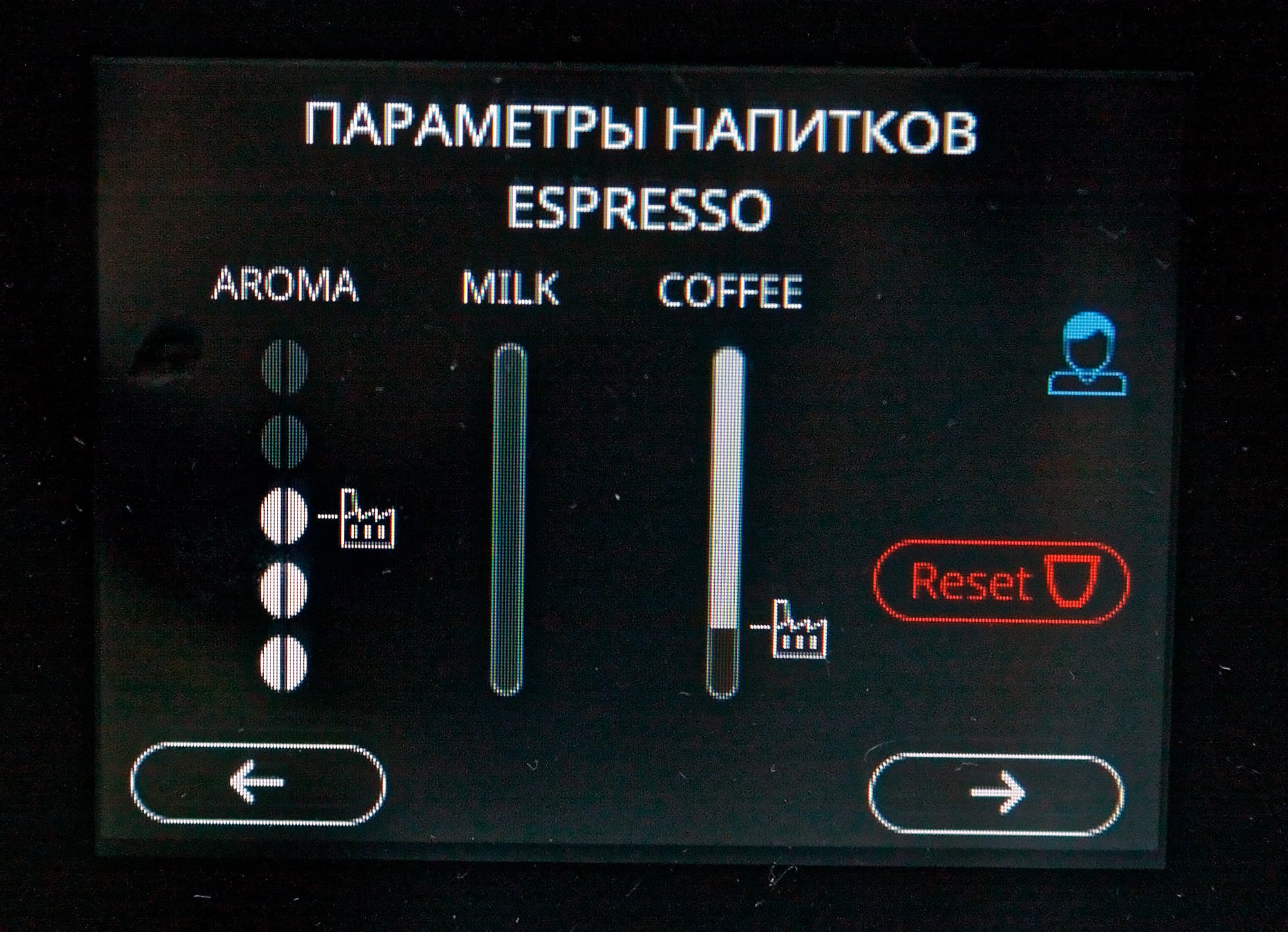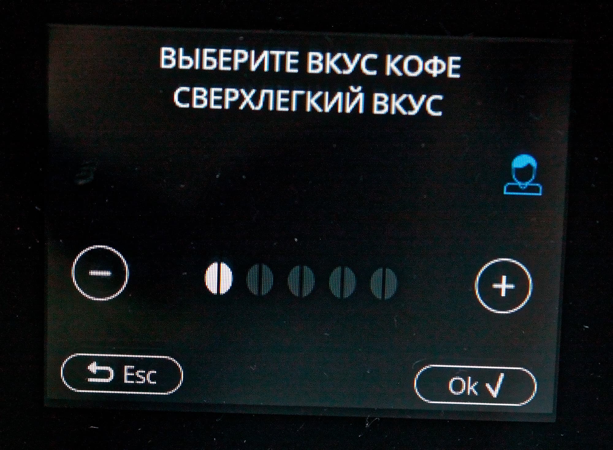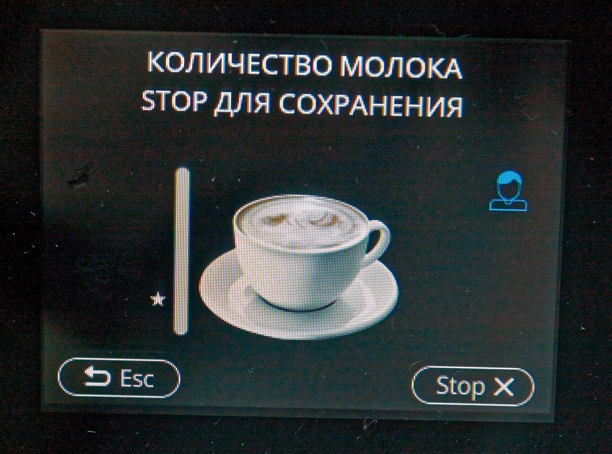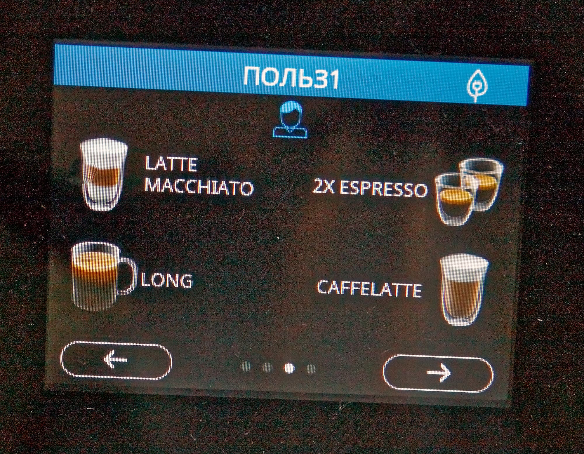 Цветной сенсорный TFT-дисплей у нашей кофемашины симпатичный: все надписи легко читаются даже при ярком освещении, сенсор срабатывает уверенно.