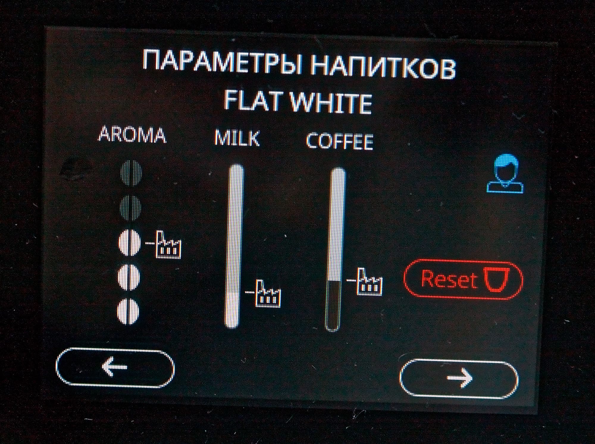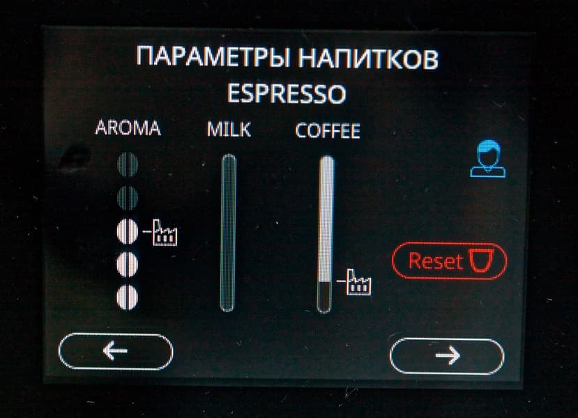 Как мы уже писали выше, различные напитки требуют молочную пену разной плотности, но эту регулировку машина сама произвести не может, поэтому при приготовлении напитка на экран выводятся соответствующие рекомендации по регулировке капучинатора.
