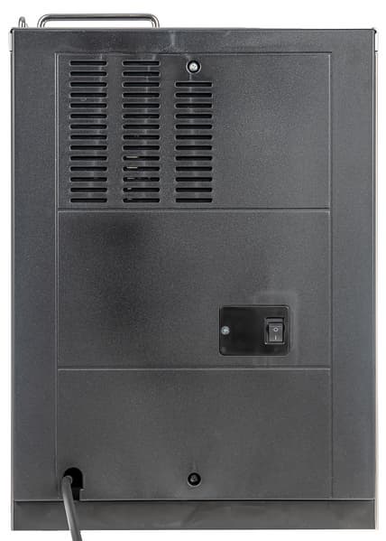 Тыльная сторона пластиковая. Тут расположена основная кнопка включения, выход шнура питания и вентиляционные отверстия.