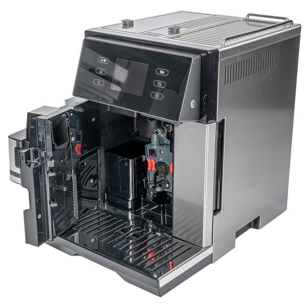 За передней дверцей расположен компактный заварочный блок, который требует периодического извлечения и очистки.