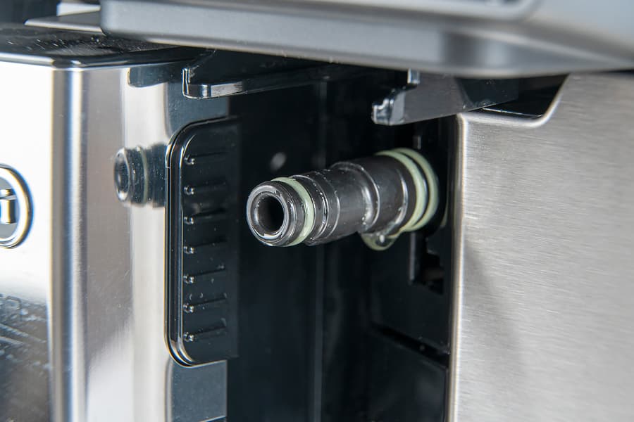 Если снять контейнер, то обнаружится, что у него есть пластиковая съемная крышка и место для установки специального фирменного фильтра. Подача воды в прибор осуществляется с помощью клапана, расположенного в нижней части. Наполнение — через отверстие в верхней части съемной крышки. Контейнер, повторимся, не слишком объемный, но в целом выглядит стандартно для кофемашин De’Longhi.