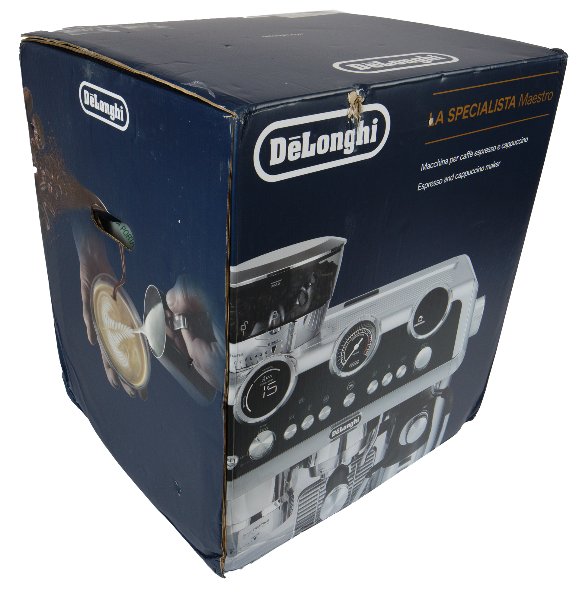Упаковка у Специалисты оказалась солидной. Внешняя часть коробки оформлена в фирменном стиле De’Longhi, благодаря которому продукцию компании легко заметить и выделить на полках магазинов. Печать, традиционно, качественная, глянцевая.