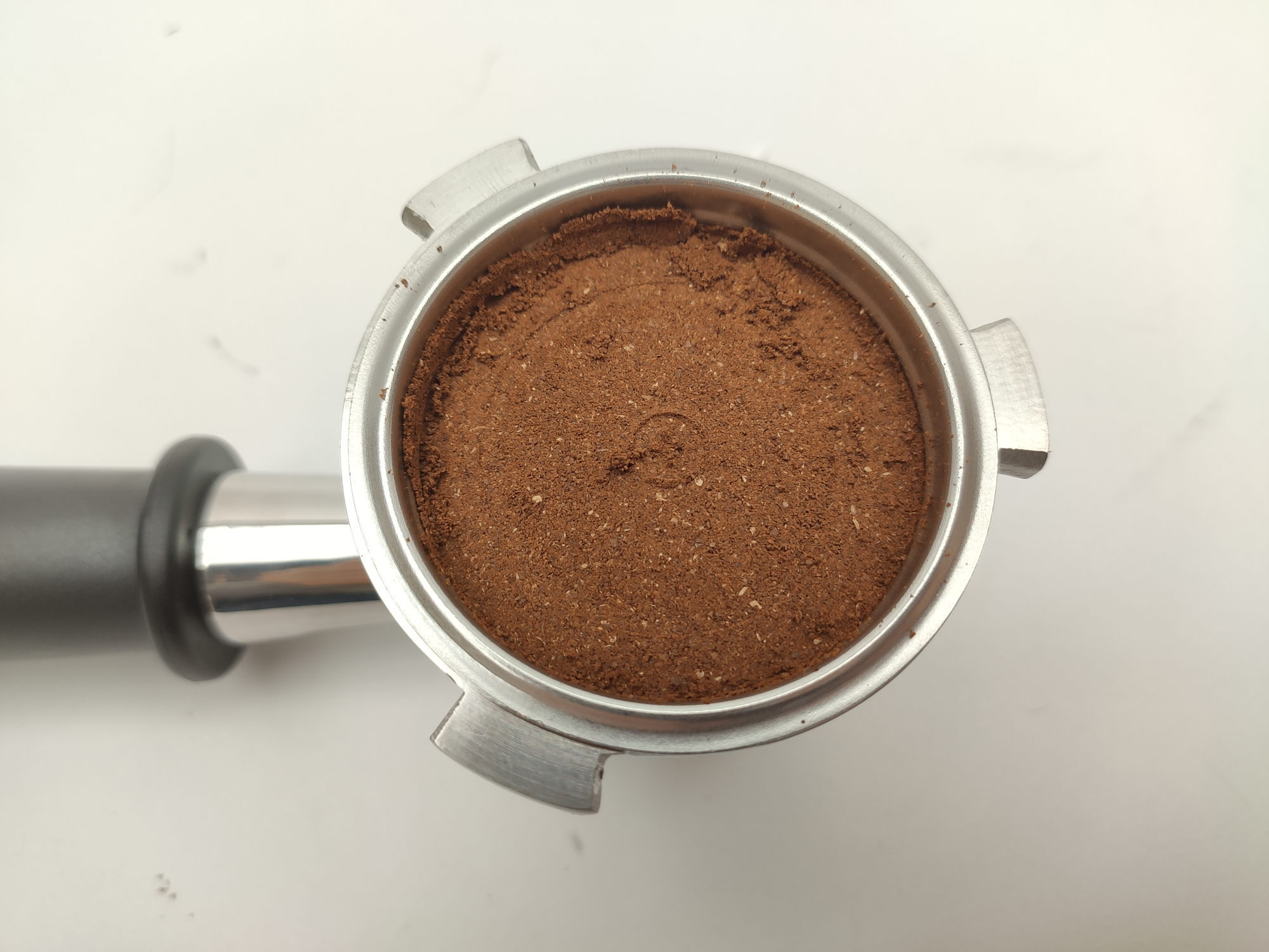 Вот так, например, у нас выглядел утрамбованный кофе в фильтре на одну порцию.