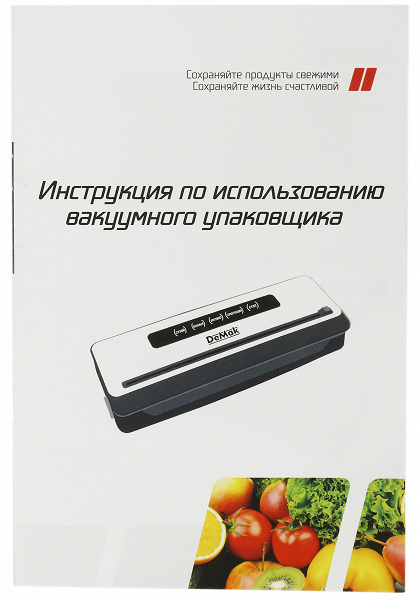 В комплект входят: вакууматор, шнур электропитания, шланг для откачки воздуха из контейнеров, 15 пакетов, инструкция и гарантийный талон.