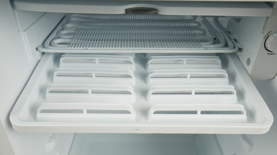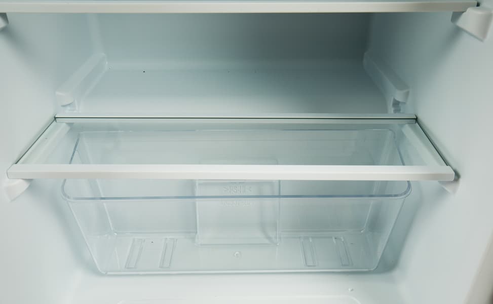 Под металлической решеткой расположен выдвижной пластиковый поддон. Он понадобится при разморозке холодильника: система размораживания тут капельная, а следовательно — потребуется приспособление для сбора влаги.
